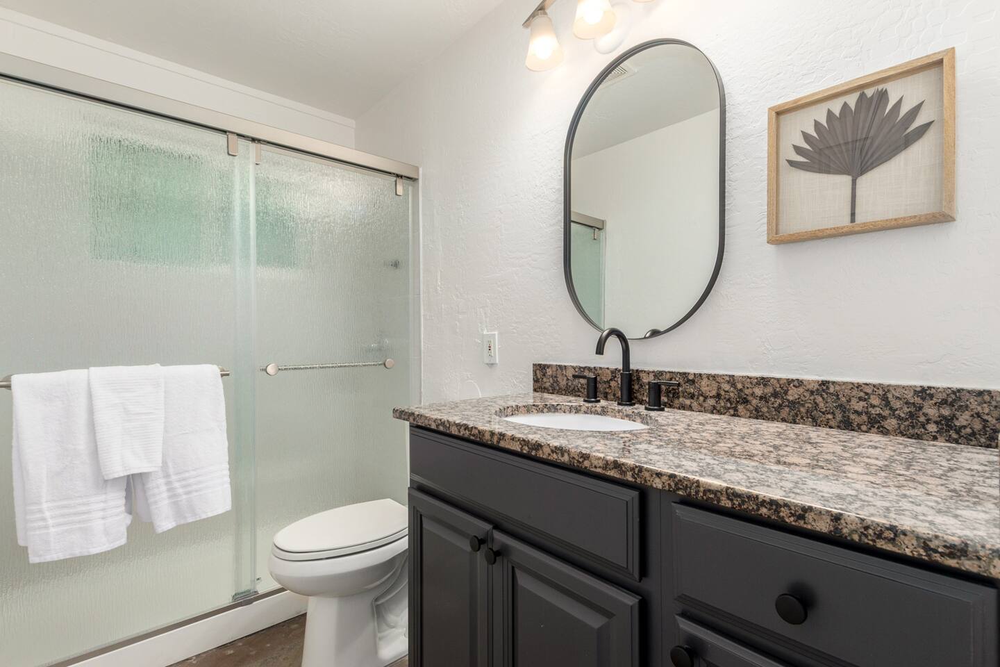 Ideally located in the heart of Tempe, just minutes from Downtown, ASU, and the buzzing energy of Mill Avenue’s restaurants and nightlife. Spend your days exploring Tempe Town Lake or Papago Park, and reach Phoenix Sky Harbor Airport in under 15 minutes. Additional Features: ✅ High-speed Wi-Fi for seamless connectivity. ✅ Laundry Facilities for your convenience. House Highlights: ✅ Open-Concept Living Area – Relax in the inviting living room featuring ample seating, perfect for unwinding after a long day. ✅ Fully Equipped Kitchen – Enjoy cooking with all the essential cookware provided, including a coffee maker. Sleeping Arrangement: Bedroom 1: King-sized bed with an en-suite bath Bedroom 2: Full-sized bed with ample storage Bedroom 3: Two Twin-sized beds with ample storage Booking Details: ✅ Check-in and Check-out: 4:00 PM and 10:00 AM, respectively. Guests are expected to adhere to these designated times. Detailed instructions will be provided closer to the arrival date. ✅ No. of Guests: Maximum of 8 guests. Only registered guests are allowed on the property. ✅ No Deposit Required. Long-Term Stay Rules: I. Long-Term Stay Essentials. For guests staying long-term, we provide a one-time starter supply of essentials to ensure a comfortable arrival. Once these items run out, guests are responsible for purchasing additional supplies, so please use them wisely. ✅ Toiletries & Essentials: Shampoo, conditioner, and body wash ✅ Paper Goods: Toilet paper ✅ Kitchen Basics: Dish soap, trash bags ✅ Laundry: Laundry detergent II. Services ✅ Laundry: We do not provide laundry services. Guests are welcome to use the in-unit washer and dryer at their own convenience. ✅ Housekeeping: The cleaning fee covers standard cleaning between reservations only. There is no daily housekeeping. If you’d like a mid-stay cleaning, we can connect you with our cleaning team at your expense. 📍 Nearby Attractions ✈️ Sky Harbor Airport: 18 min drive (13-15 mi) 🚴 Arizona Canal Trail: 20 min (10 mi) 🛍️ Tempe Marketplace: 8 min (4 mi) 🎭 ASU Gammage/ASU Campus & Art Museum: 5 min (2 mi) ⛰️ “A” Mountain (Hayden Butte): 6 min (2 mi) 🏞️ Tempe Town Lake / Tempe Beach Park: 4 min (1 mi) 🌄 Papago Park / Hole in the Rock: 12 min (5 mi) ⚾ Tempe Diablo Stadium: 7 min (3 mi) 🎤 Marquee Theatre: 6 min (2 mi) 🛒 Nearby Grocery Stores: ✓ Trader Joe’s: 7-10 min (3 mi) ✓ Safeway: 6-8 min (2–3 mi) ✓ Fry’s Food Stores: 10 min (4–5 mi) ✓ ALDI: 8 min (3–4 mi) ✓ Sprouts Farmers Market: 8 min (3–4 mi) Our Team: This home is proudly hosted by Stay Klassi Properties, a trusted vacation rental management company committed to exceptional hospitality and seamless stays. We are dedicated to providing you with a personal, immersive, and authentic experience—ensuring comfort, convenience, and unforgettable memories. Let us make your getaway truly exceptional! With endless activities in every direction, there’s always something exciting to do in Tempe! Book your mid-century getaway today and experience the perfect mix of style, comfort, and convenience.