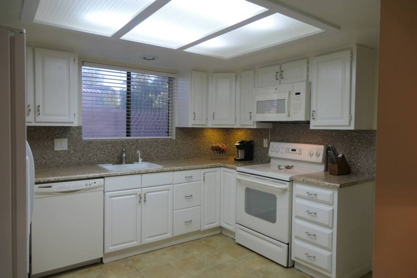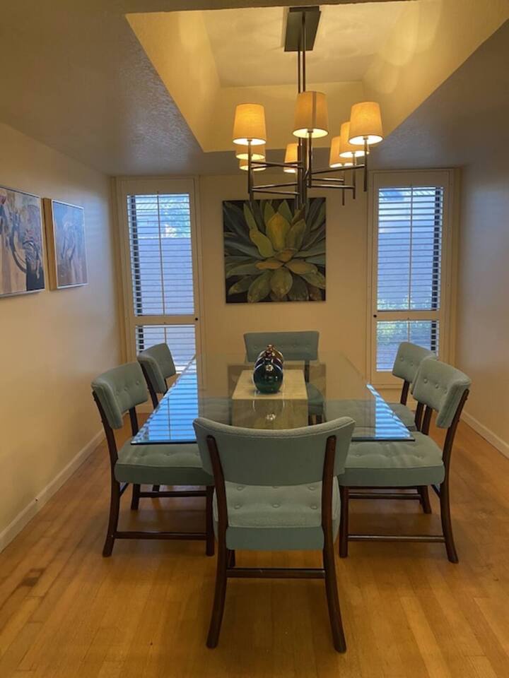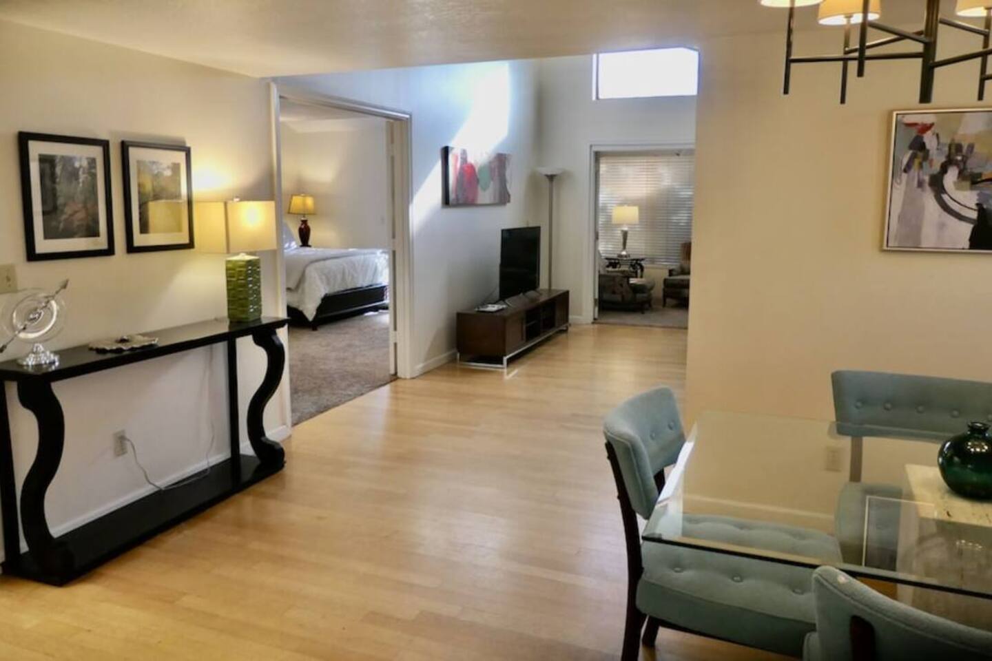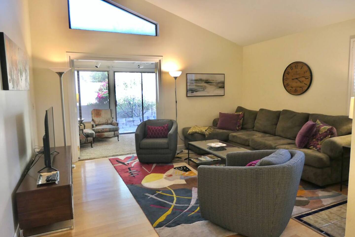 Welcome to this quaint and charming single-story end-unit townhome! Step inside to an inviting, light-filled space, thanks to the beautiful interior atrium that floods the home with natural sunlight. The open floor plan features vaulted ceilings, wood floors, and tasteful décor that create a cozy and welcoming atmosphere. Whether you're visiting for work, play, or a bit of both, this townhome offers the perfect blend of comfort, convenience, and charm in the heart of Tempe!