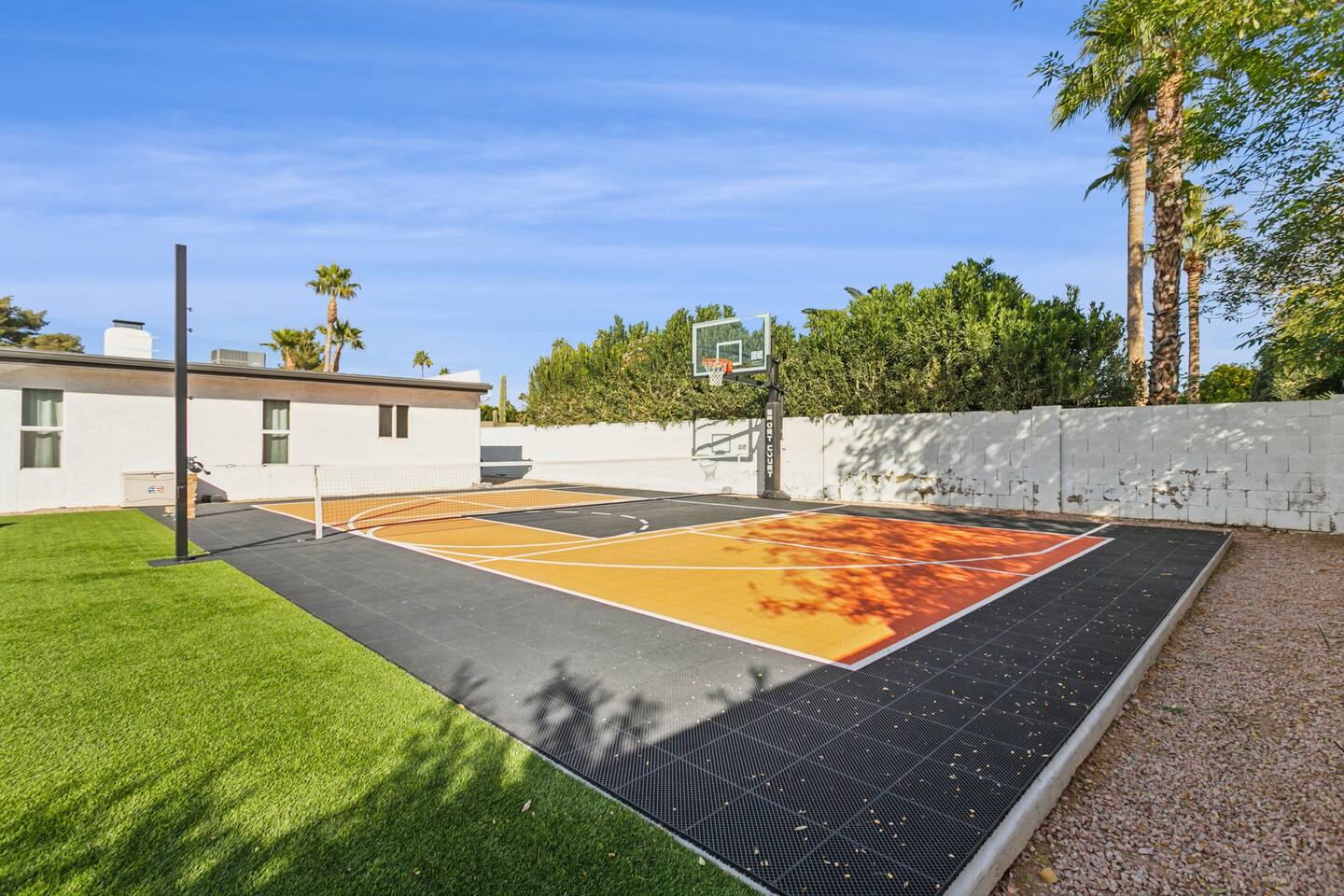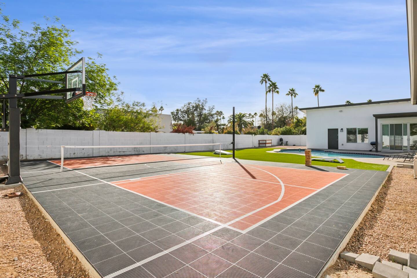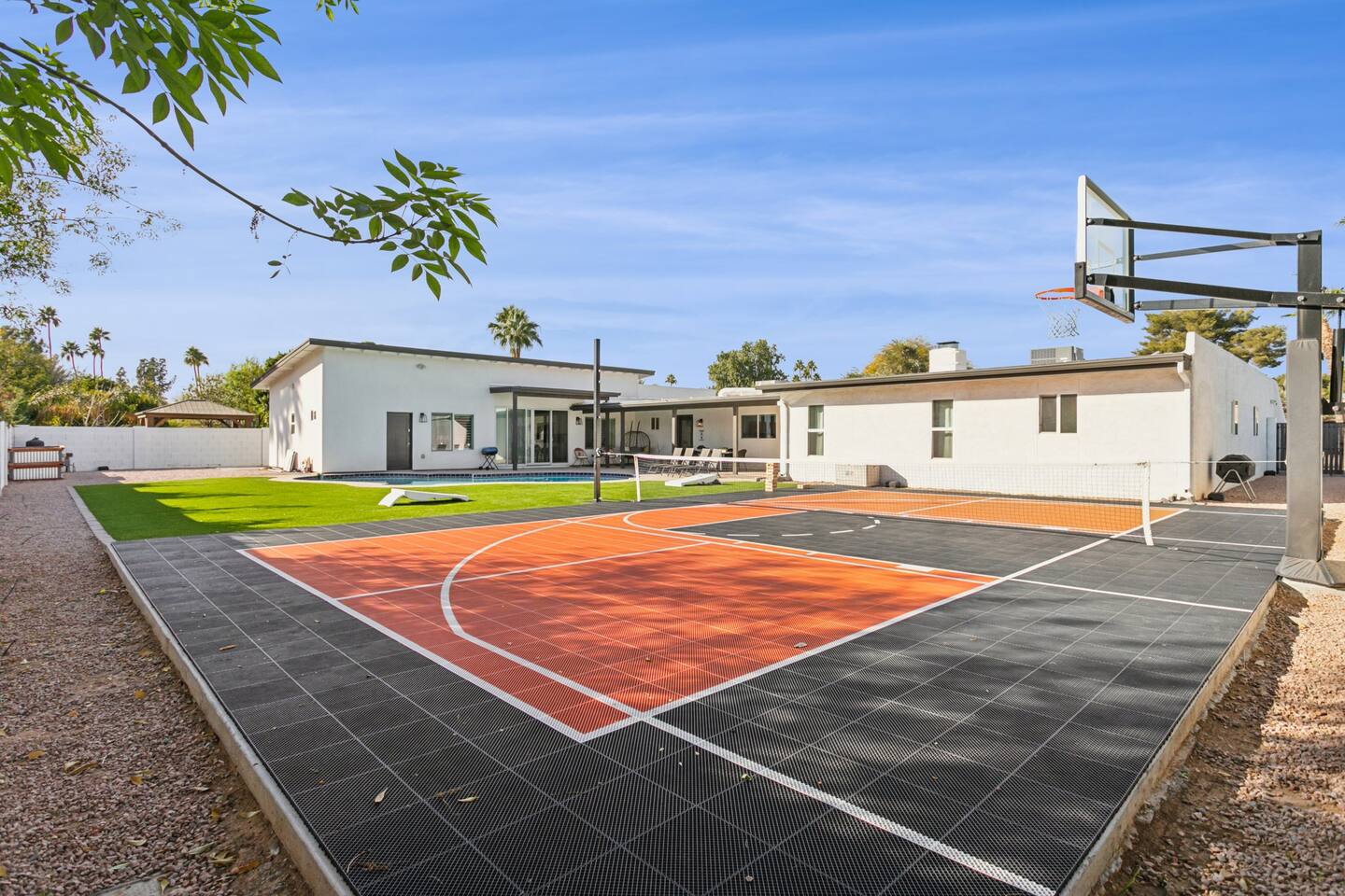 Luxurious Scottsdale Retreat – Private Pool, Sports Court & Guest Casita Welcome to your ultimate Scottsdale getaway! This stunning property offers a perfect blend of relaxation and recreation, featuring a private pool, multi-sports court, and a separate guest casita for added comfort. Main House Highlights: ✅ Spacious Living: Open-concept design with stylish décor and comfortable seating. ✅ Gourmet Kitchen: Fully equipped with high-end appliances for all your cooking needs. ✅ Bedrooms: Four elegantly furnished bedrooms with plush bedding and ample storage. ✅ Private Suite: A secluded fifth bedroom with a king bed, Smart TV, en-suite bathroom, and direct backyard access. Bed Arrangement: I. Main House Primary Bedroom: king bed with smart TV, walk-in closet, en-suite bathroom, and backyard access 2th bedroom: Double bed over 2 Twin beds (bunk-style) 3nd bedroom: Queen bed 4rd bedroom: Queen bed II. Guest Casita 5th bedroom: King bed with smart TV, en-suite bathroom, and backyard access 6th bedroom: Queen bed with en-suite bathroom *Additional Sleeping Arrangement: 1 Complimentary Air Mattress Outdoor and Entertainment: ✅ Backyard: Situated at the heart of the property, between the main house and the casita, with multiple entry points for easy access. ✅ Private Pool: While not heated, this pool offers the perfect spot for a refreshing swim or to lounge poolside, soaking up the Arizona sun. ✅ Equipped for basketball, volleyball, and pickleball—shoot some hoops or enjoy other outdoor activities. ✅ Additional Games: Enjoy Cornhole or indoor ping-pong for even more fun and entertainment. ✅ Outdoor Dining & BBQ: Dine al fresco with a spacious dining area and grill. Additional Features: ✅ High-Speed Wi-Fi for seamless connectivity. ✅ Smart TVs throughout the home for entertainment. ✅ Laundry Facilities for your convenience. ✅ Pack n' Play and Highchair Set. Parking: ✅ The main house includes a two-car garage ✅ Street parking is also available for larger groups Location: Nestled in the heart of North Scottsdale, Scottsdale Oasis offers easy access to top destinations! ✈️: Sky Harbor Airport (21 min) 🛍️: Scottsdale Quarter (6 min); Kierland Commons (6 min); Old Town Scottsdale (18 min) ⛳️: TPC Scottsdale (14 min) and Starfire Golf Club (9 min) 🦋: OdySea Aquarium (13 min) and Butterfly Wonderland (13 min) 🏔️: Camelback Mountain (15 min) Local Scene: 6 mins: Scottsdale Quarter 6 mins: Kierland Commons 8 mins: Starfire Golf Club 10 mins: TPC Scottsdale - Waste Management - Phoenix Open 11 mins: West World of Scottsdale 11 mins: Desert Ridge Marketplace 12 mins: OdySea Aquarium 12 mins: Butterfly Wonderland 12 mins: Gainey Ranch Golf Club 13 mins: The Pavilions at Talking Stick 14 mins: Octane Raceway 14 mins: Mavrix Entertainment 14 mins: Top Golf 14 mins: Talking Stick Resort and Casino 14 mins: Talking Stick Resort 14 mins: Silverado Golf Club 14 mins: Salt River Fields 15 mins: Paradise Valley 15 mins: Central Scottsdale 15 mins: Grayhawk Golf Club 16 mins: Chaparral Park 16 mins: The Henry 17 mins: Old Town Scottsdale 17 mins: Scottsdale Fashion Square 17 mins: Phoenix Mountains Preserve 18 mins: Entertainment District 20 mins: Scottsdale Stadium 20 mins: Sloan Park 20 mins: Camelback Mountain 21 mins: Tempe Town Lake 22 mins: Chase Field - Diamondbacks 22 mins: Footprint Center - Phoenix Suns 31 mins: State Farm Stadium - Arizona Cardinals With outdoor adventures and luxurious amenities all within reach, this home is the perfect starting point for your Scottsdale escape. Book now and experience Scottsdale in style! TPT License Number: 21469399 STR-2024-001881