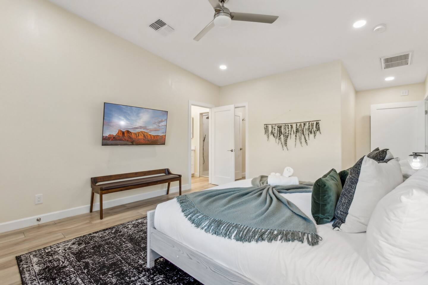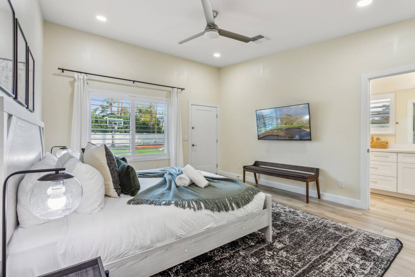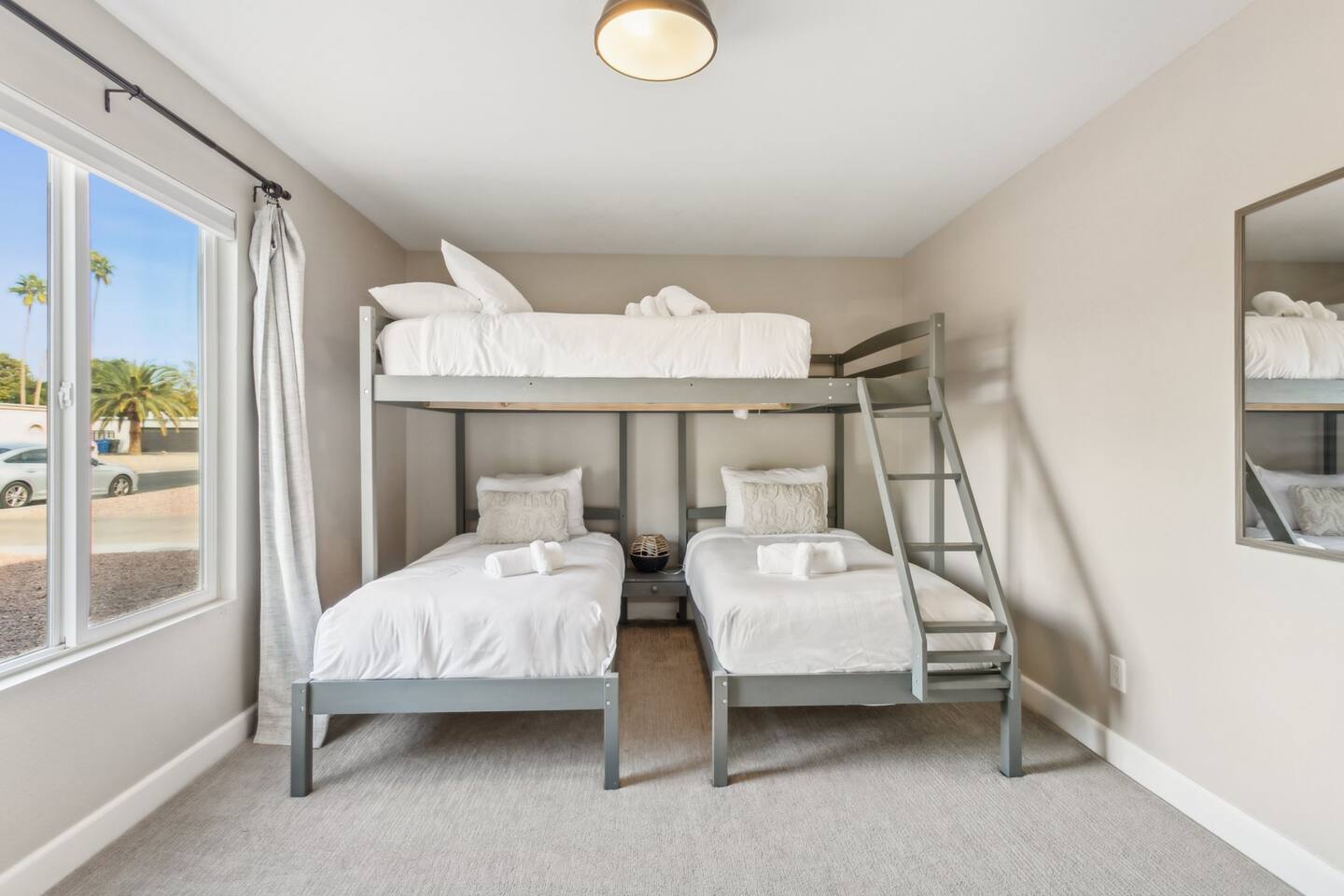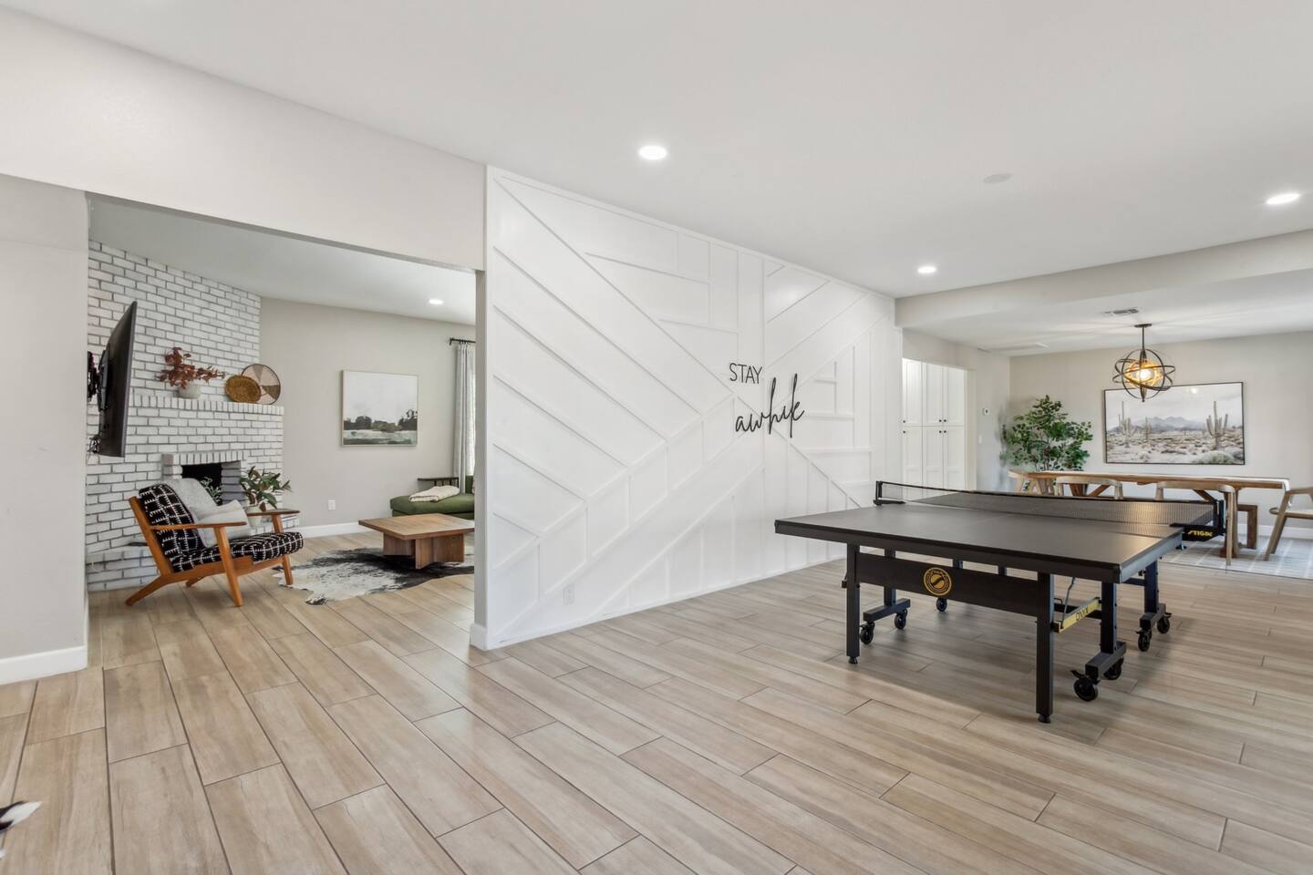 Luxurious Scottsdale Retreat – Private Pool, Sports Court & Guest Casita Welcome to your ultimate Scottsdale getaway! This stunning property offers a perfect blend of relaxation and recreation, featuring a private pool, multi-sports court, and a separate guest casita for added comfort. Main House Highlights: ✅ Spacious Living: Open-concept design with stylish décor and comfortable seating. ✅ Gourmet Kitchen: Fully equipped with high-end appliances for all your cooking needs. ✅ Bedrooms: Four elegantly furnished bedrooms with plush bedding and ample storage. ✅ Private Suite: A secluded fifth bedroom with a king bed, Smart TV, en-suite bathroom, and direct backyard access. Bed Arrangement: I. Main House Primary Bedroom: king bed with smart TV, walk-in closet, en-suite bathroom, and backyard access 2th bedroom: Double bed over 2 Twin beds (bunk-style) 3nd bedroom: Queen bed 4rd bedroom: Queen bed II. Guest Casita 5th bedroom: King bed with smart TV, en-suite bathroom, and backyard access 6th bedroom: Queen bed with en-suite bathroom *Additional Sleeping Arrangement: 1 Complimentary Air Mattress Outdoor and Entertainment: ✅ Backyard: Situated at the heart of the property, between the main house and the casita, with multiple entry points for easy access. ✅ Private Pool: While not heated, this pool offers the perfect spot for a refreshing swim or to lounge poolside, soaking up the Arizona sun. ✅ Equipped for basketball, volleyball, and pickleball—shoot some hoops or enjoy other outdoor activities. ✅ Additional Games: Enjoy Cornhole or indoor ping-pong for even more fun and entertainment. ✅ Outdoor Dining & BBQ: Dine al fresco with a spacious dining area and grill. Additional Features: ✅ High-Speed Wi-Fi for seamless connectivity. ✅ Smart TVs throughout the home for entertainment. ✅ Laundry Facilities for your convenience. ✅ Pack n' Play and Highchair Set. Parking: ✅ The main house includes a two-car garage ✅ Street parking is also available for larger groups Location: Nestled in the heart of North Scottsdale, Scottsdale Oasis offers easy access to top destinations! ✈️: Sky Harbor Airport (21 min) 🛍️: Scottsdale Quarter (6 min); Kierland Commons (6 min); Old Town Scottsdale (18 min) ⛳️: TPC Scottsdale (14 min) and Starfire Golf Club (9 min) 🦋: OdySea Aquarium (13 min) and Butterfly Wonderland (13 min) 🏔️: Camelback Mountain (15 min) Local Scene: 6 mins: Scottsdale Quarter 6 mins: Kierland Commons 8 mins: Starfire Golf Club 10 mins: TPC Scottsdale - Waste Management - Phoenix Open 11 mins: West World of Scottsdale 11 mins: Desert Ridge Marketplace 12 mins: OdySea Aquarium 12 mins: Butterfly Wonderland 12 mins: Gainey Ranch Golf Club 13 mins: The Pavilions at Talking Stick 14 mins: Octane Raceway 14 mins: Mavrix Entertainment 14 mins: Top Golf 14 mins: Talking Stick Resort and Casino 14 mins: Talking Stick Resort 14 mins: Silverado Golf Club 14 mins: Salt River Fields 15 mins: Paradise Valley 15 mins: Central Scottsdale 15 mins: Grayhawk Golf Club 16 mins: Chaparral Park 16 mins: The Henry 17 mins: Old Town Scottsdale 17 mins: Scottsdale Fashion Square 17 mins: Phoenix Mountains Preserve 18 mins: Entertainment District 20 mins: Scottsdale Stadium 20 mins: Sloan Park 20 mins: Camelback Mountain 21 mins: Tempe Town Lake 22 mins: Chase Field - Diamondbacks 22 mins: Footprint Center - Phoenix Suns 31 mins: State Farm Stadium - Arizona Cardinals With outdoor adventures and luxurious amenities all within reach, this home is the perfect starting point for your Scottsdale escape. Book now and experience Scottsdale in style! TPT License Number: 21469399 STR-2024-001881