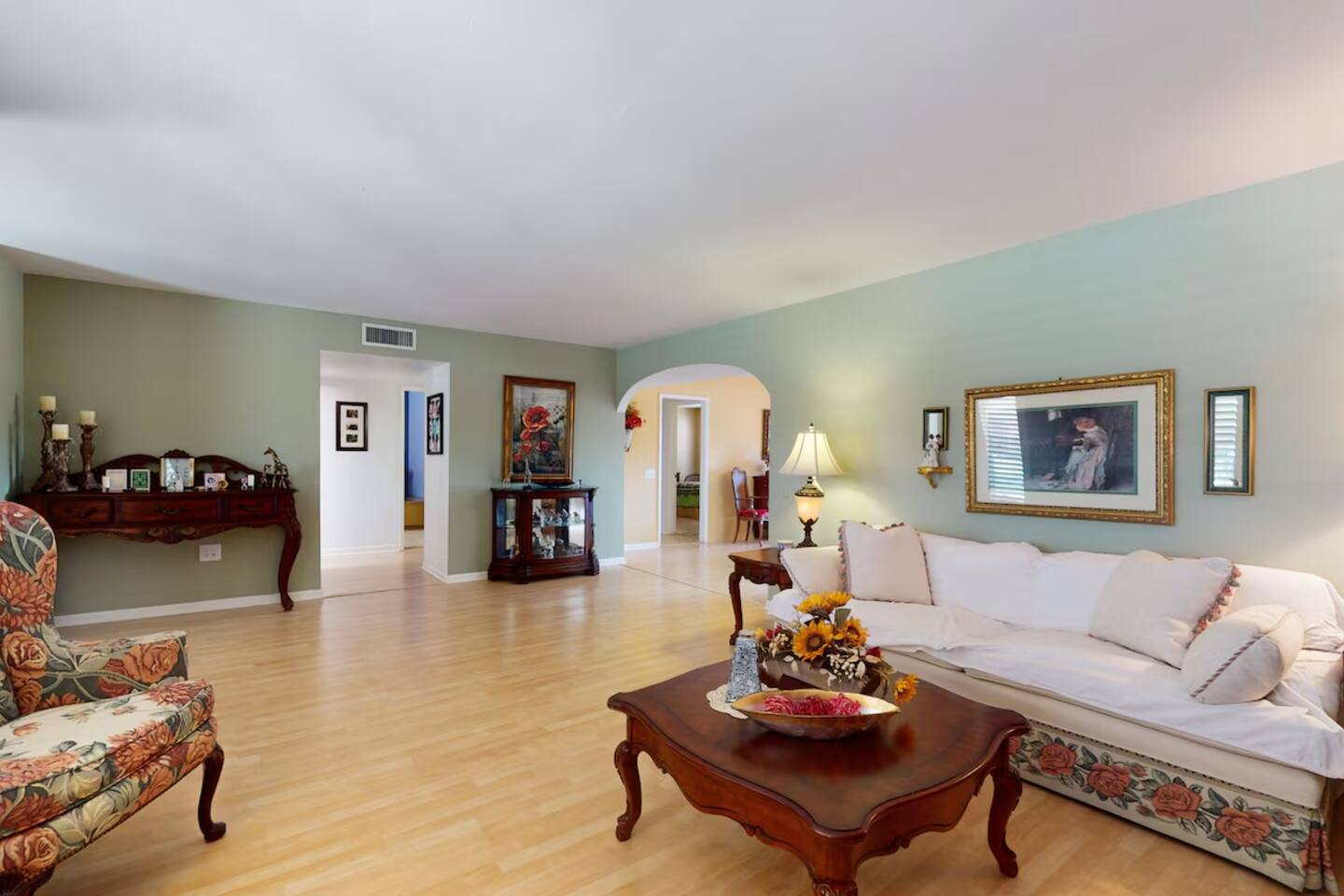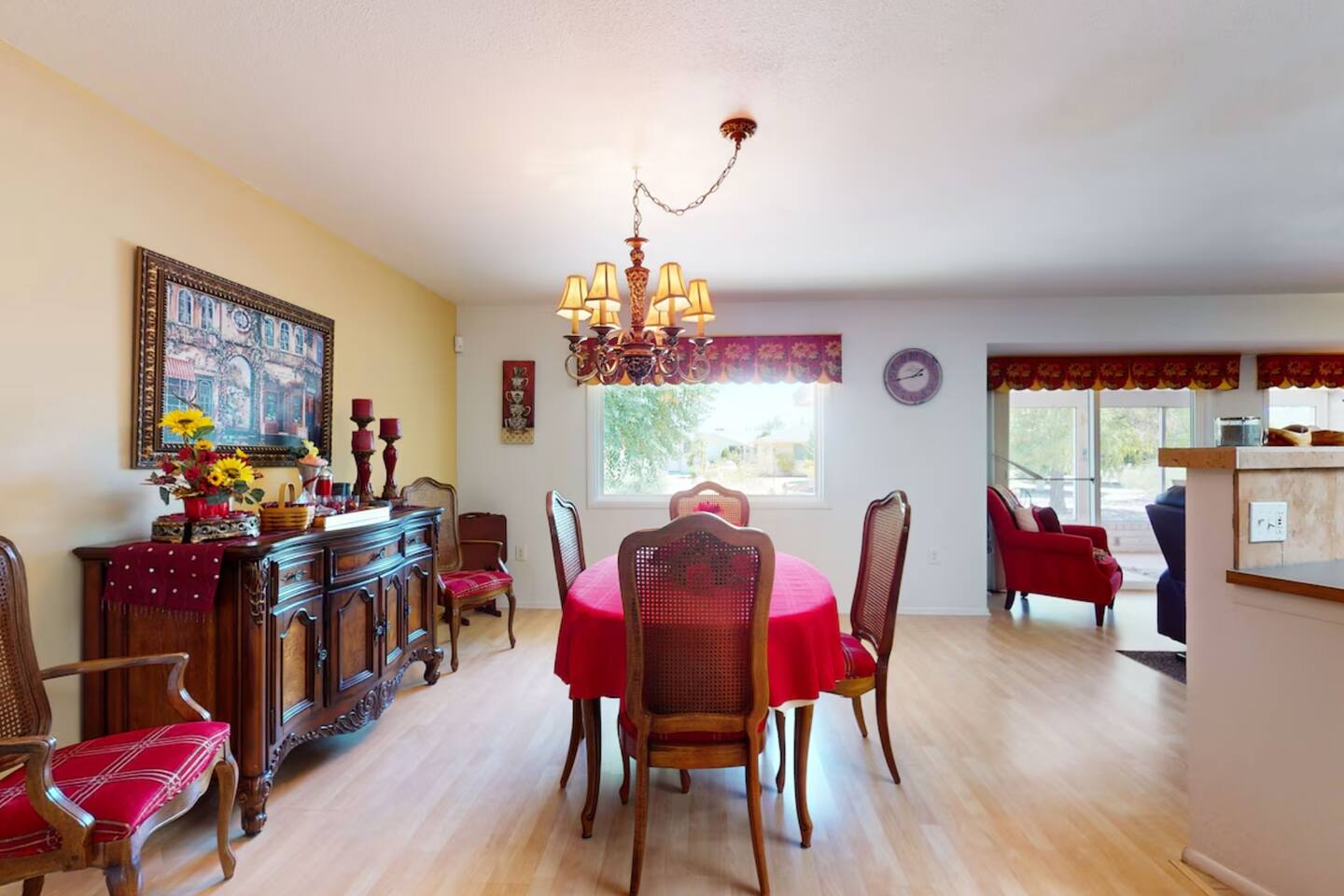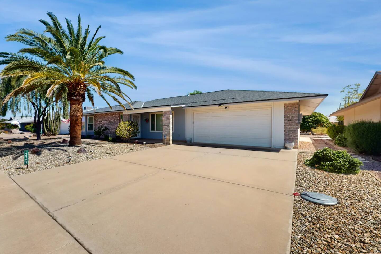 Nestled in the peaceful and friendly community of Sun City West, this single-level home is your ideal retreat for rest, relaxation, and desert adventure. Whether you’re looking to unwind, explore the stunning desert landscape, or visit nearby golf courses and attractions, this inviting home serves as the perfect home base for your Arizona stay. House Highlights: ✅ Open-Concept Living Area – Relax in the inviting living room featuring a smart TV and ample seating, perfect for unwinding after a long day. ✅ Fully Equipped Kitchen – Enjoy cooking with all the essential cookware provided. ✅ Comfortable Bedrooms – Two beautifully furnished bedrooms, each with a queen-sized bed for a restful night’s sleep. Additional Features: ✅ High-speed Wi-Fi for seamless connectivity. ✅ In-unit washer and dryer for added convenience ✅ Wheelchair accessible layout ✅ Free parking for up to 4 vehicles Accessibility Features: ✅ Disabled parking spots ✅ Step-free access ✅ Accessible-height toilets Entertainment Options: ✅ Board games ✅ Nearby golf courses Booking Details: ✅ Check-in and Check-out: 4:00 PM and 10:00 AM, respectively. Guests are expected to adhere to these designated times. Detailed instructions will be provided closer to the arrival date. ✅ No. of Guests: Maximum of 4 guests. Only registered guests are allowed on the property. ✅ No Deposit Required. Important Note: 55+ Community Requirement This home is located in a 55+ community. In accordance with local laws and HOA regulations, the primary as well as half of all guests must be 55 years of age or older during the stay. While guests of all ages are welcome to visit, this requirement must be met for booking eligibility. Recreation Center Access: Guests have the option to access the Sun City West recreation centers; however, please note that access is managed directly by the association and comes at an additional cost. At this time, only one guest may be eligible for membership unless an upgraded landlord membership is purchased. Standard membership fees are $105 per person, per month. If two guests are interested, the owner is open to covering some of the upgrade cost, but the total guest contribution would be $250 upfront and $210/month for two memberships. Please keep in mind that these rates and policies are set by the Sun City West Recreation Centers, not the property owner. Long-Term Stay Rules: I. Long-Term Stay Essentials. For guests staying long-term, we provide a one-time starter supply of essentials to ensure a comfortable arrival. Once these items run out, guests are responsible for purchasing additional supplies, so please use them wisely. ✅ Toiletries & Essentials: Shampoo, conditioner, and body wash ✅ Paper Goods: Toilet paper ✅ Kitchen Basics: Dish soap, trash bags ✅ Laundry: Laundry detergent II. Services ✅ Laundry: We do not provide laundry services. Guests are welcome to use the in-unit washer and dryer at their own convenience. ✅ Housekeeping: The cleaning fee covers standard cleaning between reservations only. There is no daily housekeeping. If you’d like a mid-stay cleaning, we can connect you with our cleaning team at your expense. Please note: For everyone’s safety, the home is equipped with exterior security cameras. These are located at the front entrance and facing the driveway. The cameras monitor only exterior areas and do not capture any private or interior spaces. Nearby Attractions: 🏟️ Surprise Stadium: 10 min drive 🏟️ Peoria Sports Complex: 14 min drive 🛍️ Arrowhead Towne Center: 14 min drive ⛳️ Trilogy Golf Club at Vistancia: 14 min drive 🏟️ State Farm Stadium: 20 min drive Getting Around: ✈️ Phoenix, AZ (DVT-Phoenix Deer Valley): 30 min drive ✈️ Scottsdale, AZ (SCF): 42 min drive 🚊 Phoenix Metrocenter Transit Center: 29 min drive 🚊 Northern Ave / 19th Ave Station: 30 min drive 🚊 19 Avenue / Dunlap Station: 31 min drive Restaurants: ✓ Sun City Bakery: 13 min walk ✓ Grille: 3 min drive ✓ Nino's Mexican Restaurant: 4 min drive ✓ Ole Mexican Foods: 5 min drive ✓ Garden Cafe: 5 min drive Nearby Grocery Stores: ✓ Safeway: 6 min (2.2 mi) ✓ Fry's: 7 min (2.4 mi) ✓ Bashas': 7 min (2.7 mi) ✓ Target Grocery: 10 min (3.9 mi) ✓ Albertsons: 10 min (3.7 mi) ✓ Walmart Supercenter: 11 min (4.3 mi) Our Team: This home is proudly hosted by Stay Klassi Properties, a trusted vacation rental management company committed to exceptional hospitality and seamless stays. We are dedicated to providing you with a personal, immersive, and authentic experience—ensuring comfort, convenience, and unforgettable memories. Let us make your getaway truly exceptional! Book your getaway today and experience Arizona living at its finest!
