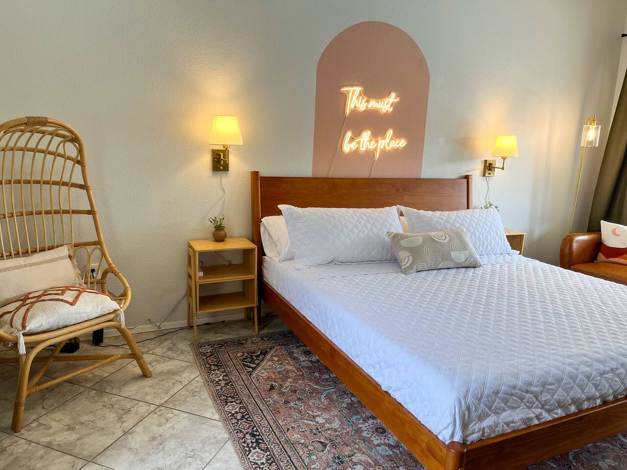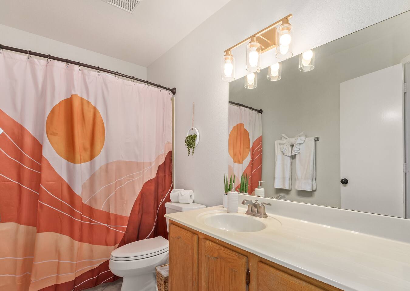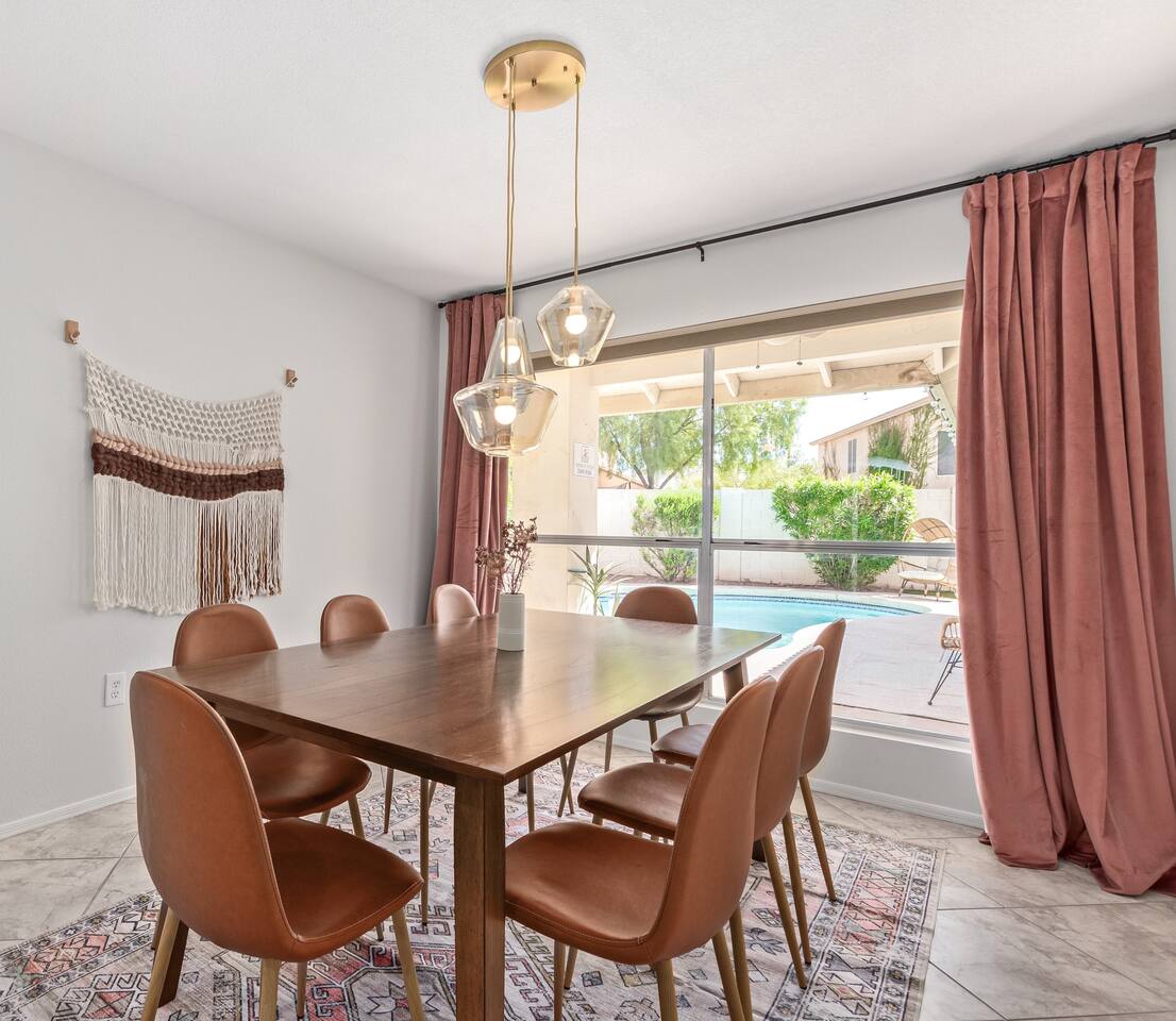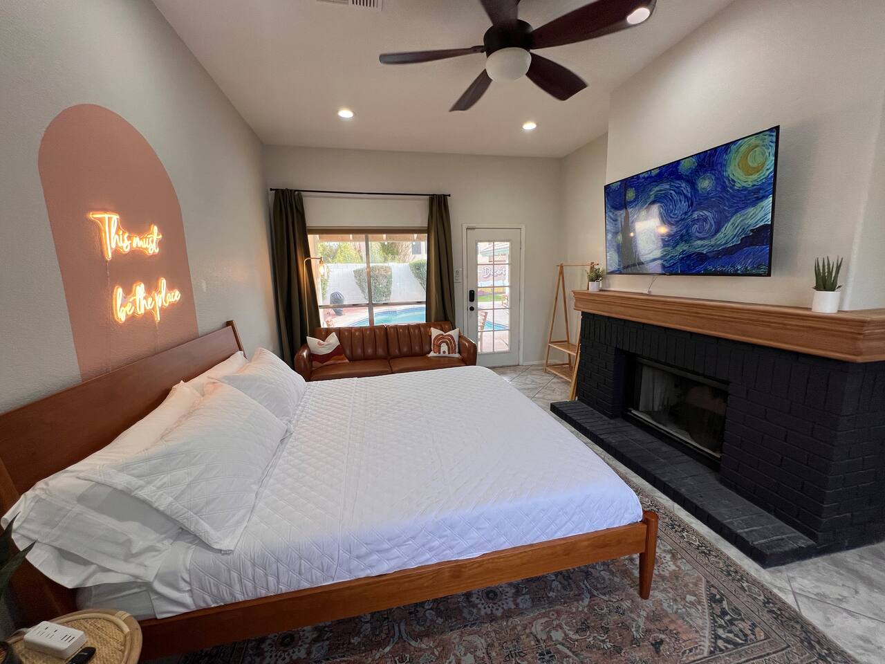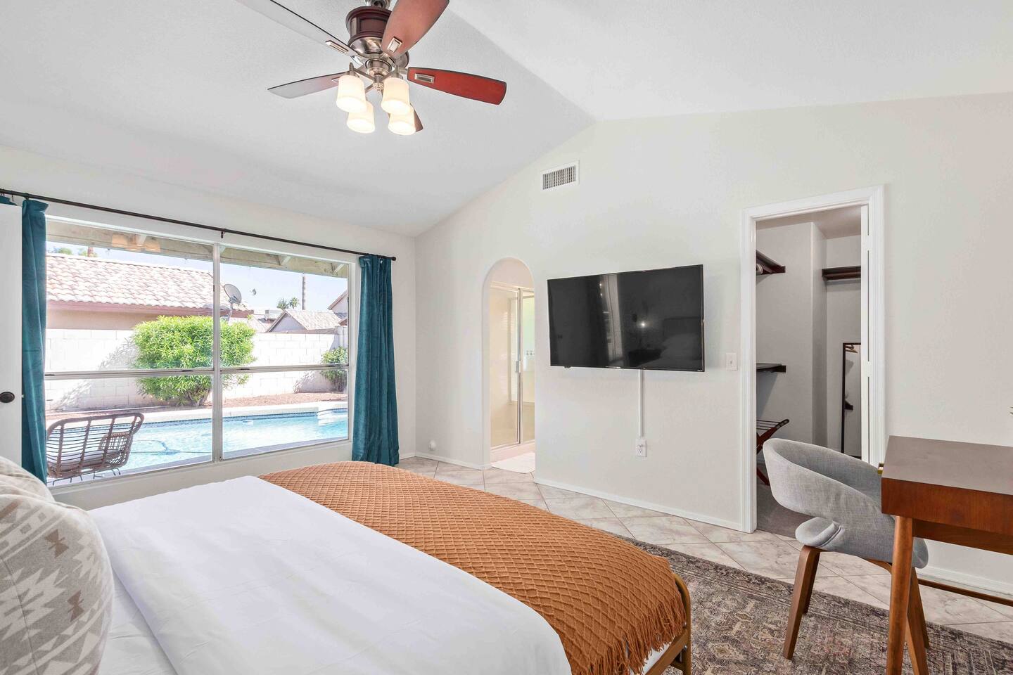 Our home sleeps 11 with 4 bedrooms and 2.5 baths. You'll find it's the perfect spot for a family or two, a group golf trip, or a guys’ or girls' trip. We have tastefully designed it to be a stylish yet cozy place to hang out. We have several great spaces where you'll enjoy lounging including the living room with a 65" TV, and spacious dining room that seats 8. If you choose to play a round of golf at one of the many nearby courses, challenge your friends to a putting contest on the newly installed putting green to wind down after a busy day. ACTIVITIES AND FOOD You can easily get to hiking trails, golf courses, sporting events, shopping, and top-notch restaurants. There is a tremendous food scene just minutes away in Downtown Chandler. If you are lucky enough to be here on a Saturday morning, you will be in for a treat at the Farmers' Market downtown. If you’re looking for a round of golf, there are too many options to count but the Ocotillo Golf Resort is one of our favorites and is 10 minutes South. Conveniently located by the freeway, you’ll have easy access to Scottsdale, Phoenix, and the surrounding areas. Family friendly attractions include the Phoenix Zoo, Aquarium, Main Event, TopGolf, and water parks. Check out our guidebook for a complete list of fun things to do including nightlife, food scene, golf courses, brunch spots, and family fun. If you are staying in, you can enjoy food delivery from a wide variety of local restaurants (one of our personal favorites is Flower Child!). You can also cook in our fully equipped kitchen. ENTERTAINMENT -Putting green -Lawn games -Foosball table -Swimming pool (Heated) -Charcoal Grill -Fast WiFi -65" smart TV in living room -58" smart TV in Fireplace Bedroom -55" smart TV in Master bedroom -55" smart TV in Queen bedroom -Sega Genesis -Board and card games BATHROOMS -Shampoo, conditioner, body soap, hair dryer, bath towels & pool towels LAUNDRY -Washer and dryer -Detergent -Ironing board and iron PARKING -Two spots in driveway -Free street parking KITCHEN -Pots, pans, toaster, mixing bowls, and baking dishes -Coffee and K-cup machine -Dish towels -Sharp Knives -Drinking Glasses, Wine glasses -Microwave -Dishwasher -Oven -Kettle DINING -Dining table seats 8 -Bar top seats 4 BEDROOMS -Master (main level): King bed, pool view, desk, walk-in closet, 55" smart TV, luggage stand, high-speed USB charging ports, ceiling fan -Bedroom 2 (main level): King bed, smart TV, luggage stand, high-speed USB charging ports, ceiling fan -Bedroom 3 (second floor): Queen bed, top-floor pool view, 55" smart TV, luggage stand, high-speed USB charging port, ceiling fan -Bedroom 4: (second floor): Two bunkbeds, high-speed USB charging ports