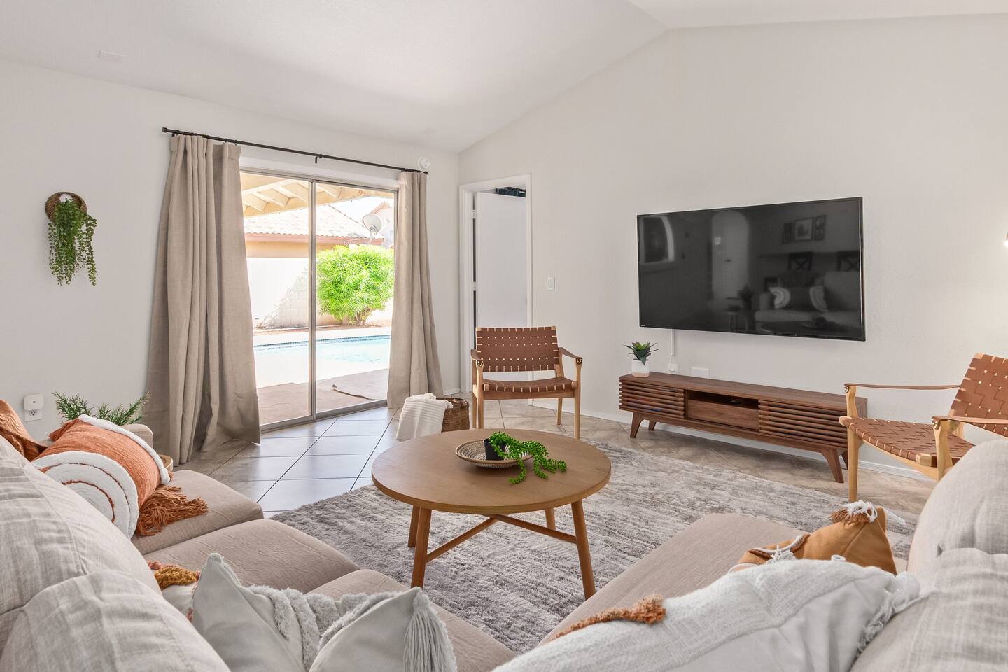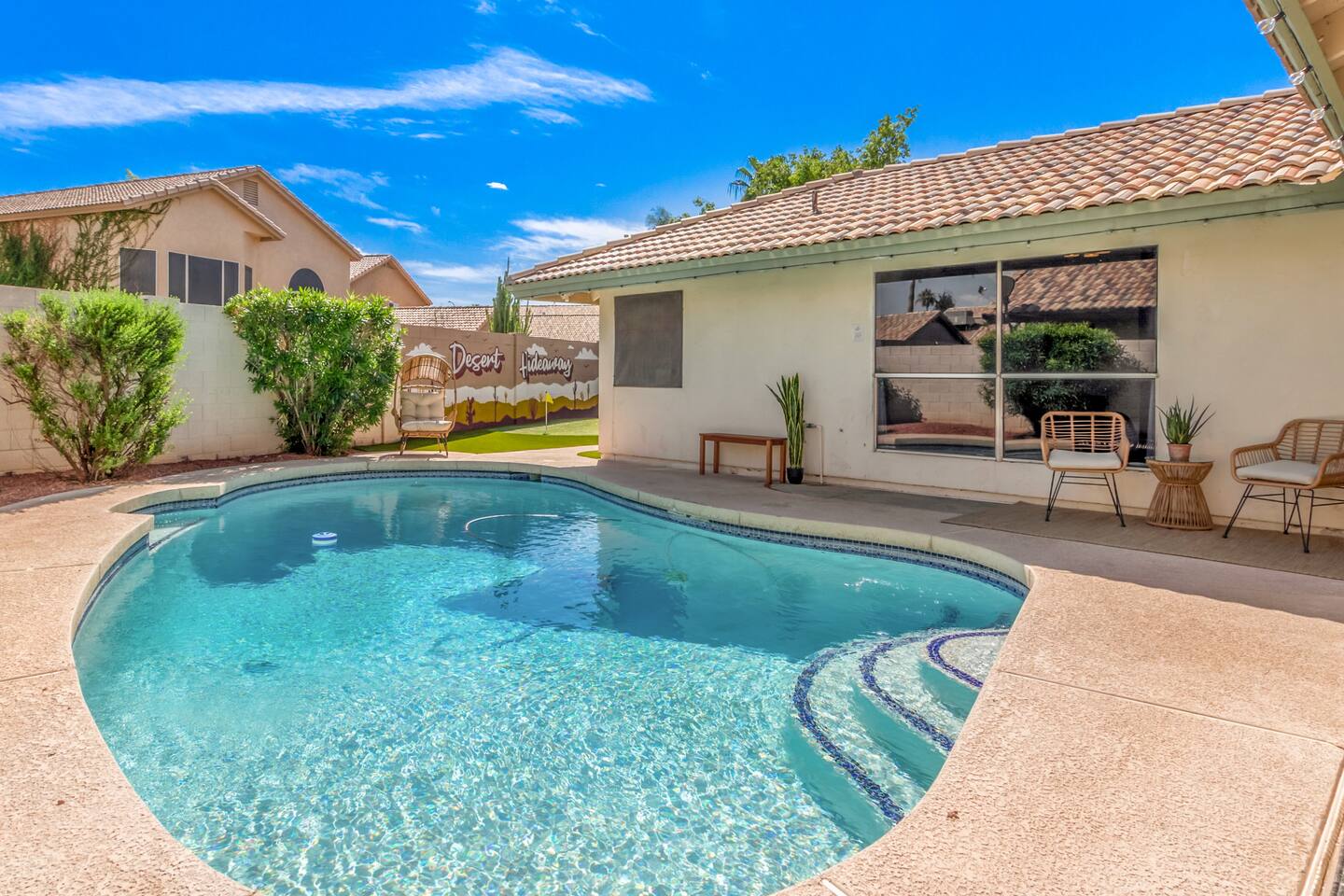 Escape to Desert Hideaway, your ultimate destination for relaxation and endless fun!! Embrace year-round sunshine with outdoor activities like swimming (heated option available), putting on the green, corn hole, and Giant Jenga. Inside, enjoy limitless entertainment options with foosball, Sega, board games, and smart TVs throughout the house. Get ready for an unforgettable stay filled with leisure and Insta-worthy delights at Desert Hideaway!