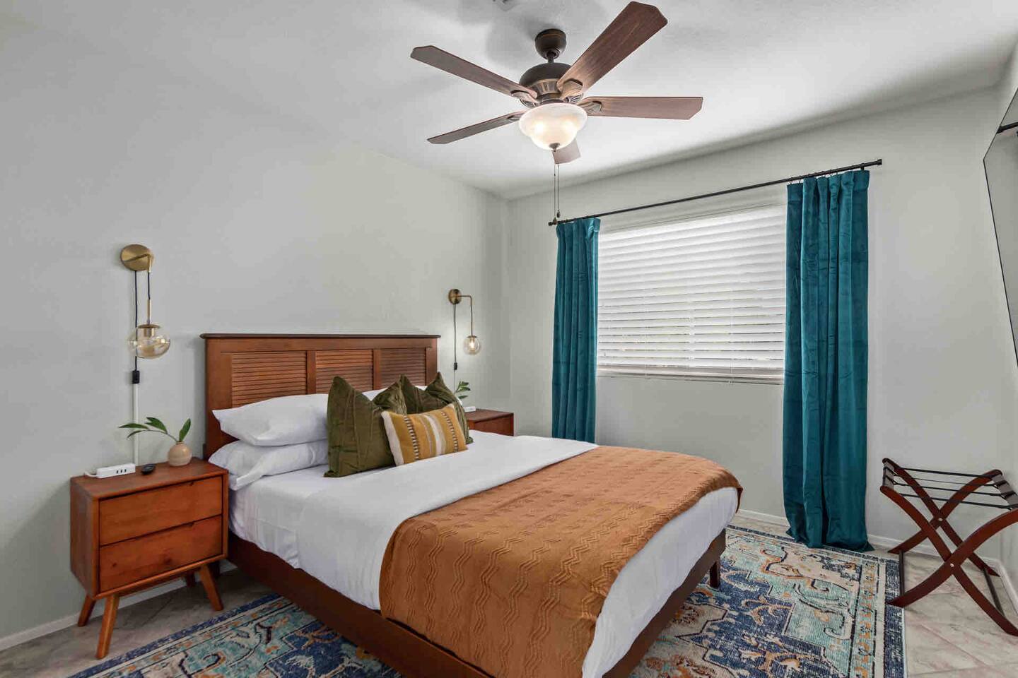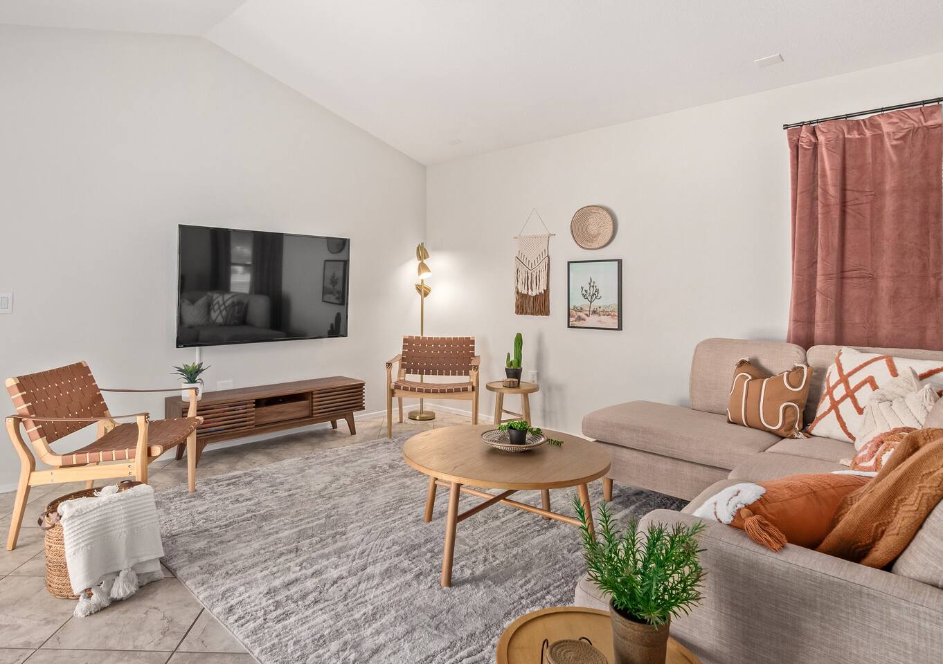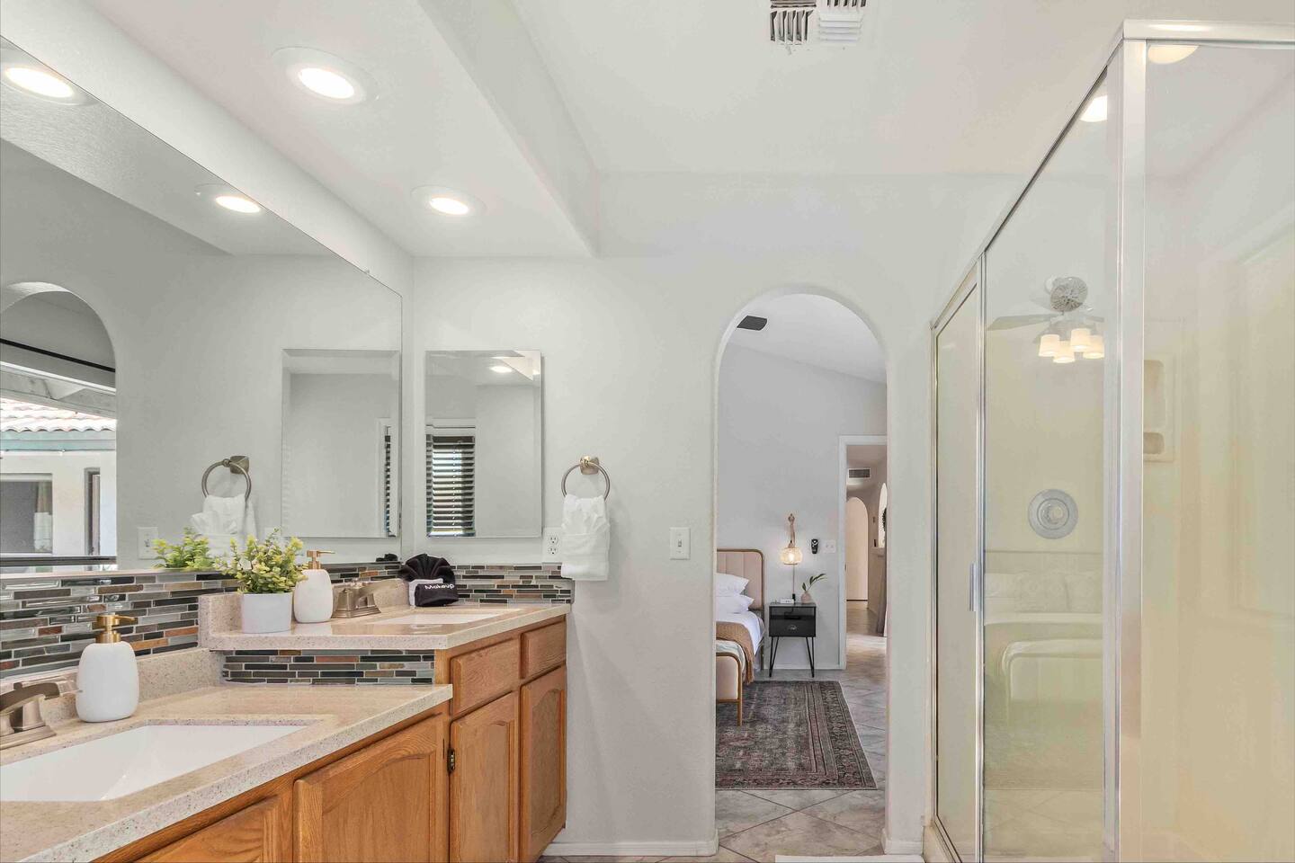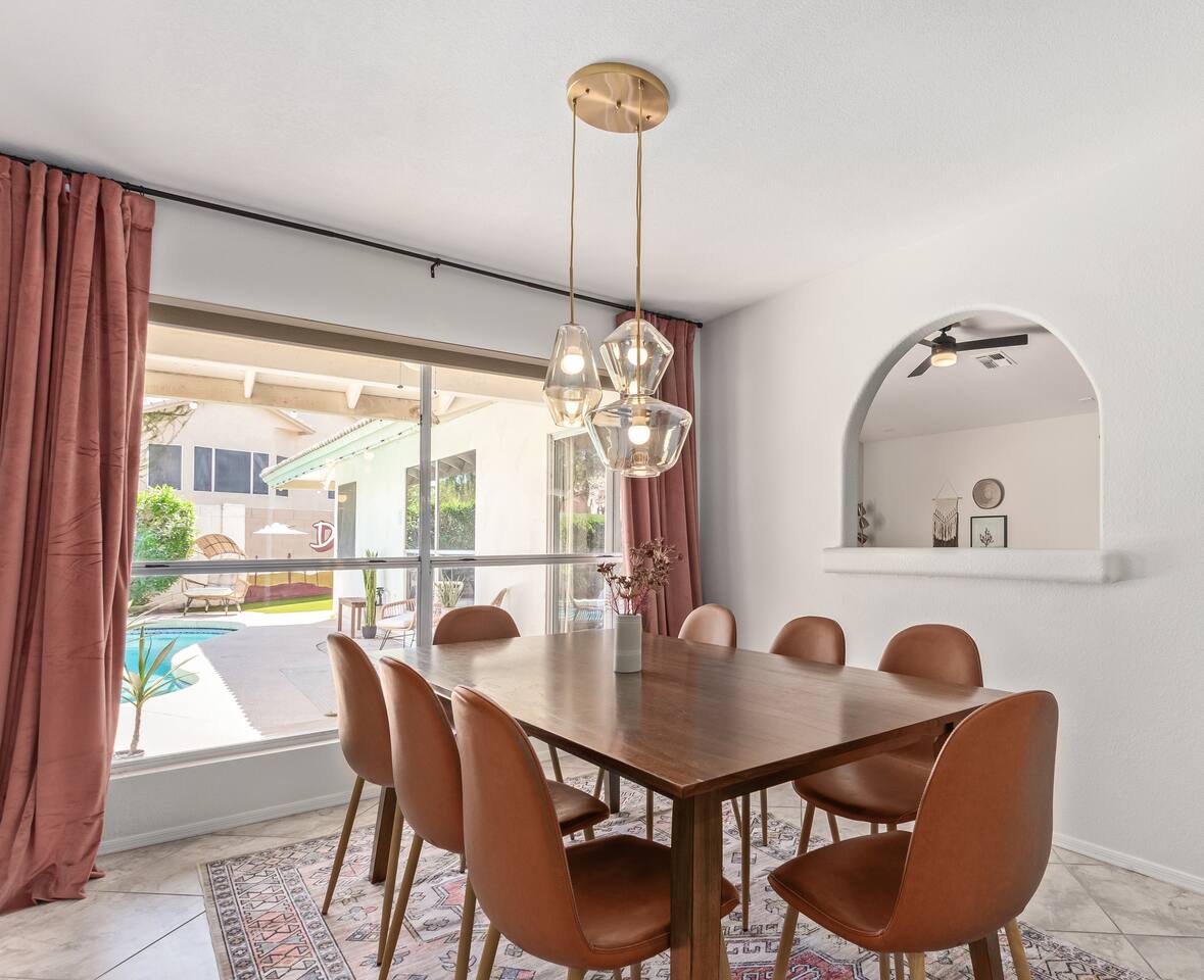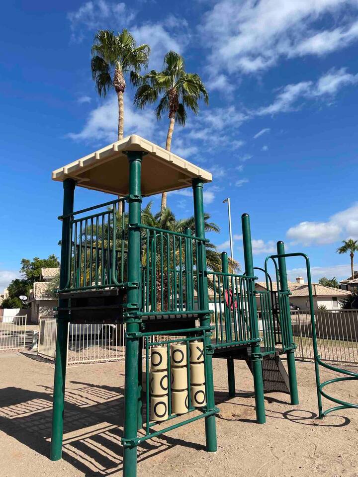 Just across the street from a park with a pickleball court, basketball court, and playground! The house is located in a quiet neighborhood where you'll see lots of cactuses and palm trees.