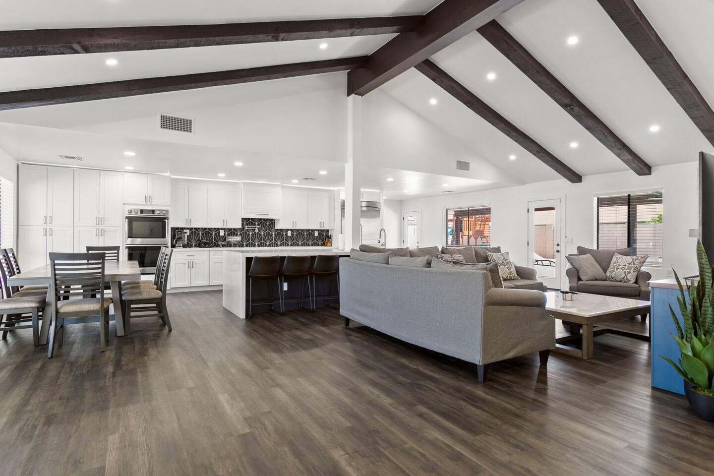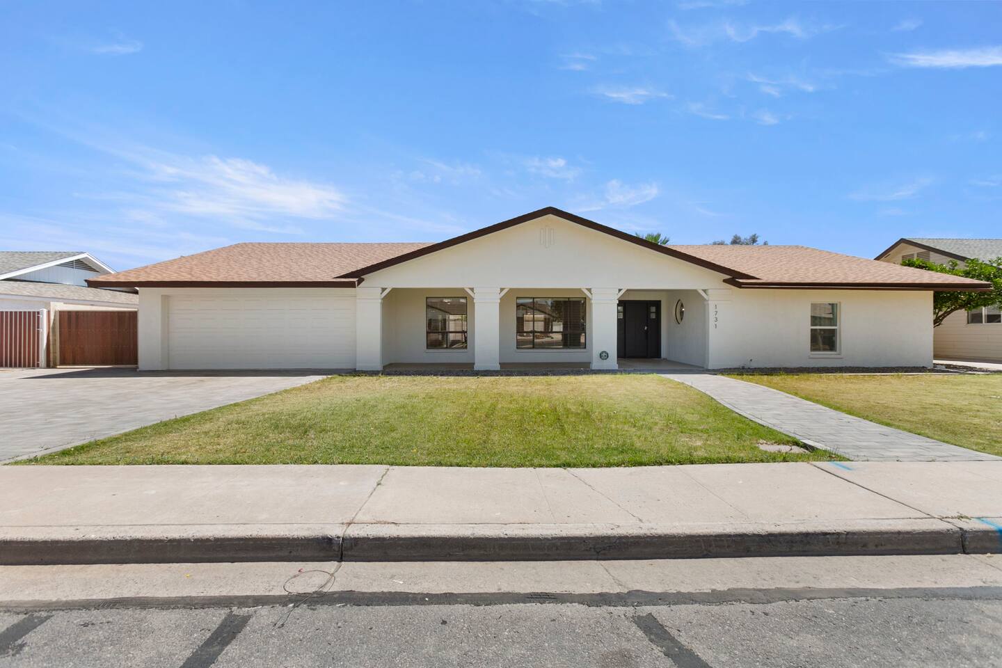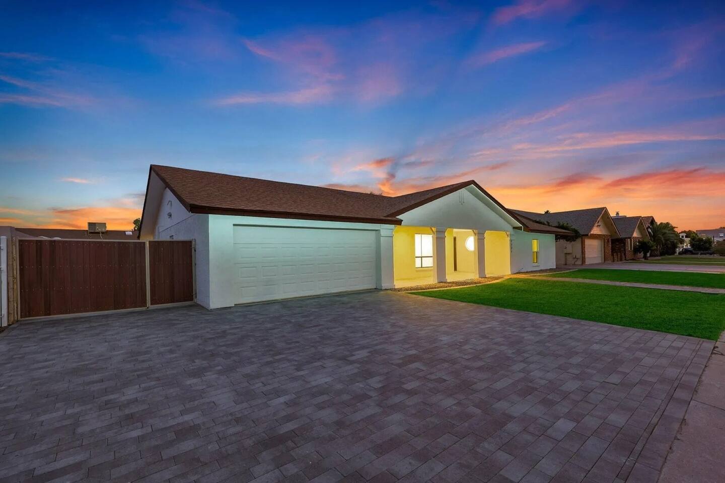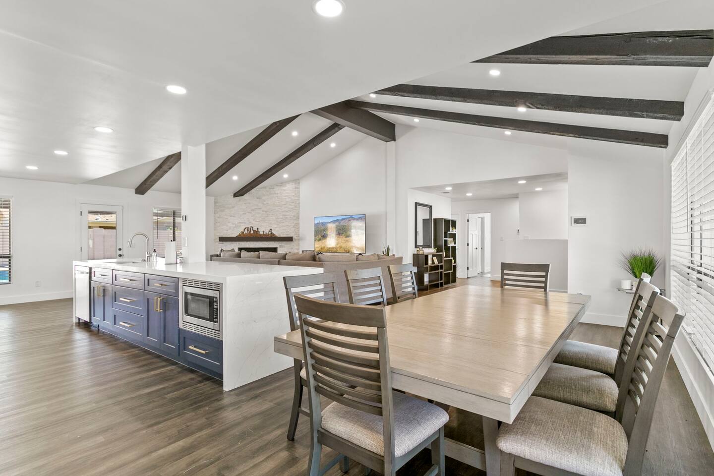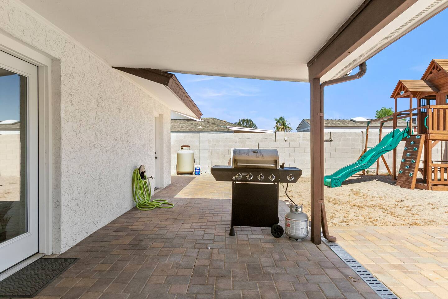 The Space Escape to Grove Oasis, which combines large square footage and custom design. Be prepared as this open-concept home will pull you right in. Upon entering the residence, you’ll notice the spacious floor plan welcoming you to make yourself right at home. Before sprinting to the pool, however, make sure to explore the spacious indoor living areas with beautiful bedrooms in which to kick back and relax away your travels. But don't rest too long - there's so much to do at this stylish home! Full Service Kitchen: Indulge in our modern full-service kitchen! With state-of-the-art appliances seamlessly integrated into the sleek, minimalist aesthetic, this culinary haven caters to every need. Whether you're a seasoned chef or an amateur cook, we welcome you to come spice up life! Living Room Area: Kick back and relax with the entire crew in the incredible living room space off the open concept kitchen and dining room. Large spacious L shaped sofa is the perfect space to stream your favorite shows on our 75" Smart TV while waiting for dinner with family and friends. Theatre/Bonus Room Area: Get ready for epic movie nights in our theater! We're talking an 86" screen that's basically life-sized, and a sound system that'll have you feeling every boom and whisper. So grab the popcorn, kick back, and let's turn movie nights into unforgettable adventures, right here at your home away from home. Bedrooms: Come sink into a cloud of comfort in our bedrooms! We use soft sheets and snuggly comforters that'll make you never want to leave. A King, Four Queens, and eight Bunk beds for the kiddos. Oh and a futon! Bring the gang and have maximum sleepover vibes. It's all about making your stay feel like a warm hug – cozy and totally awesome. In total we have A king, three Queens, and 2 sets of bunk beds for the kiddos. Please note that Bedroom 1 has extra wide 36" doors for step-less outdoor entry, bathroom, and kitchen access. Direct access to a connected full bath that has a step-free door-less extra wide shower ramp and a heavy duty adjustable height plastic shower bench w/ backrest and shower handles. Bathrooms: Fresh and fabulous, our remodeled bathrooms are here to elevate your stay! Four full bathrooms so that sharing is limited! Fluffy towels, modern vibes – it's all set to make you feel pampered and right at home. Outdoor Space: Dive into the ultimate chill zone for our house guests! The pool's got it all - a slide that's all about fun, a spa that's pure relaxation, and a cool waterfall corner for those lazy vibes. It's all here, so grab your swimsuit and let's make some splashy memories. After a nice dip, the kids' playhouse is ready for adventure, while the BBQ grill is sizzling for your outdoor feast. Throw down with Corn hole or outdoor Jenga! Pool/Hot Tub: Please note that the pool and spa/hot tub heat cannot be turned on at the same time. These are automated and controlled on our end. If the pool heat is currently on and you'd like to switch to the hot tub, simply send us a message, and we’ll be happy to turn it on for you. We're committed to ensuring you have the best experience possible, so don't hesitate to reach out if you have any questions! Other things to note Entertainment is available at the property: *86" TV Theatre room with sound system *Pool w/ waterslide/fountains/waterfall, Spa *Play-set, outdoor toys *Games, board/card games. Parking Instructions: 2 cars in driveway, 2 cars on street by the house. Nestled in Mesa, you’ll have easy access to the finest dining, entertainment, and major freeways to travel the Phoenix valley as you please. Following are a list of close by attractions: Emerald Park: A 3 minute walk will land you at Emerald Park. Over 16 acres of green grass with lots of fun options including: Disk Golf , Basketball Courts, Picnic Tables/Grills, a Playground, and more! Look for our disk golf set in the outdoor toys. Mother Nature's Farm: Just a 3 minute drive down the road is Mother Nature's Farm. Special seasonal activities can be found here! Pumpkin patches, a hay bale maze, a cozy farm boutique, and an animal petting area make this a great memory and photoshoot! Local Golf: Hit up the many nearby golf courses that are just a few miles away! Downtown Gilbert:Make sure to visit the lively nightlife of Gilbert. Just an 8 minute drive south, the town offers many pubs and restaurants. Just take Gilbert Rd south. You can't miss it! Mesa Arts Center:Ten minutes Northwest will take you to the Mesa Arts Center. Make sure to check the many events, concerts, and exhibitions! A local favorite. Golfland Sunsplash Waterpark:Cool off with the family favorite waterpark! Just 8 minutes west and you'll be slippin' and slidin'! Mini golf is also available for a quick match! There are many stores nearby to stock up with. All within a 5 minute drive or less so that you spend less time shopping and more time relaxing! Bedroom 1 has extra wide 36" doors for step-less outdoor entry, bathroom, and kitchen access. Direct access to a connected full bath that has a step-free door-less extra wide shower ramp and a heavy duty adjustable height plastic shower bench w/ backrest and shower handles. TPT License #21525826 Mesa City License #LIC23-08035