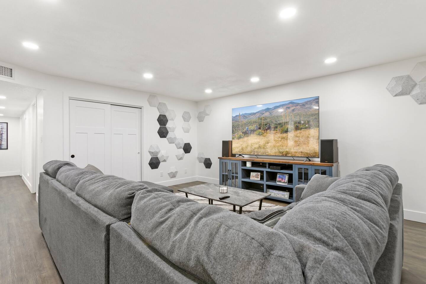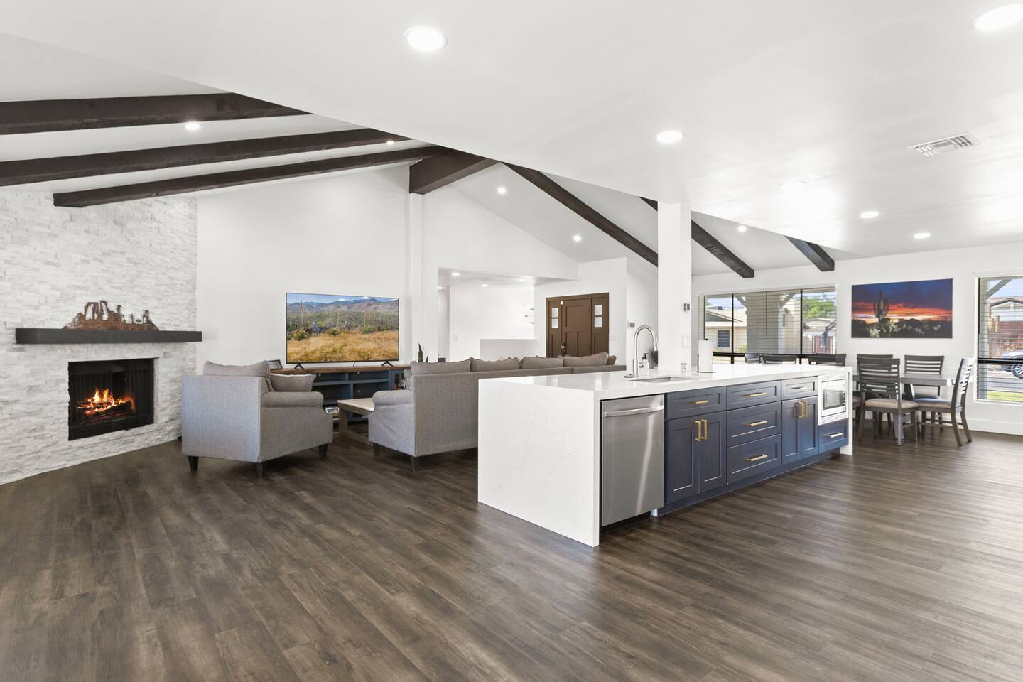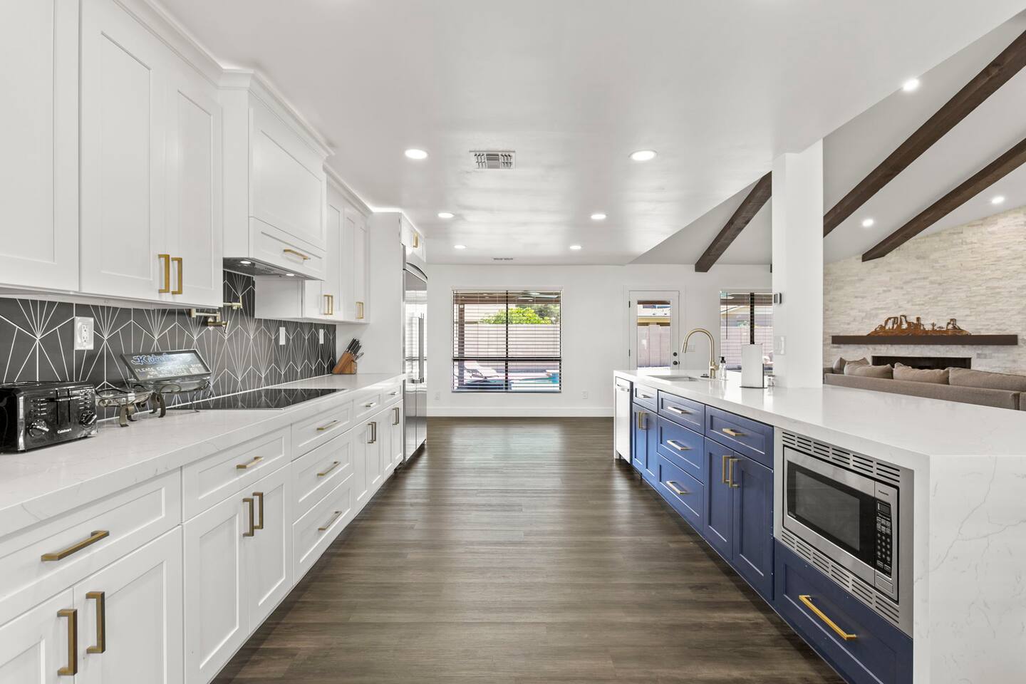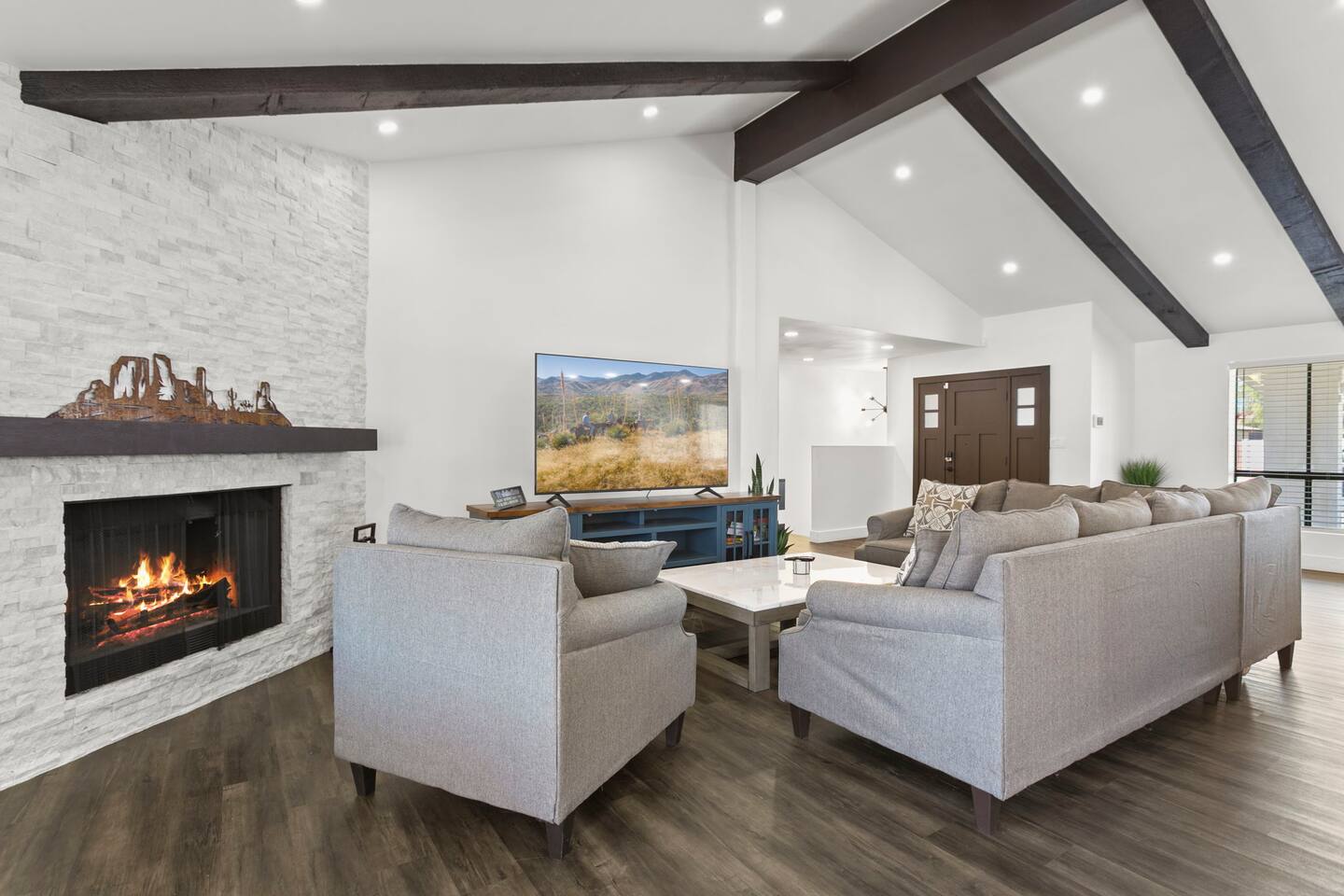 The Space Escape to Grove Oasis, which combines large square footage and custom design. Be prepared as this open-concept home will pull you right in. Upon entering the residence, you’ll notice the spacious floor plan welcoming you to make yourself right at home. Before sprinting to the pool, however, make sure to explore the spacious indoor living areas with beautiful bedrooms in which to kick back and relax away your travels. But don't rest too long - there's so much to do at this stylish home! Full Service Kitchen: Indulge in our modern full-service kitchen! With state-of-the-art appliances seamlessly integrated into the sleek, minimalist aesthetic, this culinary haven caters to every need. Whether you're a seasoned chef or an amateur cook, we welcome you to come spice up life! Living Room Area: Kick back and relax with the entire crew in the incredible living room space off the open concept kitchen and dining room. Large spacious L shaped sofa is the perfect space to stream your favorite shows on our 75" Smart TV while waiting for dinner with family and friends. Theatre/Bonus Room Area: Get ready for epic movie nights in our theater! We're talking an 86" screen that's basically life-sized, and a sound system that'll have you feeling every boom and whisper. So grab the popcorn, kick back, and let's turn movie nights into unforgettable adventures, right here at your home away from home. Bedrooms: Come sink into a cloud of comfort in our bedrooms! We use soft sheets and snuggly comforters that'll make you never want to leave. A King, Four Queens, and eight Bunk beds for the kiddos. Oh and a futon! Bring the gang and have maximum sleepover vibes. It's all about making your stay feel like a warm hug – cozy and totally awesome. In total we have A king, three Queens, and 2 sets of bunk beds for the kiddos. Please note that Bedroom 1 has extra wide 36" doors for step-less outdoor entry, bathroom, and kitchen access. Direct access to a connected full bath that has a step-free door-less extra wide shower ramp and a heavy duty adjustable height plastic shower bench w/ backrest and shower handles. Bathrooms: Fresh and fabulous, our remodeled bathrooms are here to elevate your stay! Four full bathrooms so that sharing is limited! Fluffy towels, modern vibes – it's all set to make you feel pampered and right at home. Outdoor Space: Dive into the ultimate chill zone for our house guests! The pool's got it all - a slide that's all about fun, a spa that's pure relaxation, and a cool waterfall corner for those lazy vibes. It's all here, so grab your swimsuit and let's make some splashy memories. After a nice dip, the kids' playhouse is ready for adventure, while the BBQ grill is sizzling for your outdoor feast. Throw down with Corn hole or outdoor Jenga! Pool/Hot Tub: Please note that the pool and spa/hot tub heat cannot be turned on at the same time. These are automated and controlled on our end. If the pool heat is currently on and you'd like to switch to the hot tub, simply send us a message, and we’ll be happy to turn it on for you. We're committed to ensuring you have the best experience possible, so don't hesitate to reach out if you have any questions! Other things to note Entertainment is available at the property: *86" TV Theatre room with sound system *Pool w/ waterslide/fountains/waterfall, Spa *Play-set, outdoor toys *Games, board/card games. Parking Instructions: 2 cars in driveway, 2 cars on street by the house. Nestled in Mesa, you’ll have easy access to the finest dining, entertainment, and major freeways to travel the Phoenix valley as you please. Following are a list of close by attractions: Emerald Park: A 3 minute walk will land you at Emerald Park. Over 16 acres of green grass with lots of fun options including: Disk Golf , Basketball Courts, Picnic Tables/Grills, a Playground, and more! Look for our disk golf set in the outdoor toys. Mother Nature's Farm: Just a 3 minute drive down the road is Mother Nature's Farm. Special seasonal activities can be found here! Pumpkin patches, a hay bale maze, a cozy farm boutique, and an animal petting area make this a great memory and photoshoot! Local Golf: Hit up the many nearby golf courses that are just a few miles away! Downtown Gilbert:Make sure to visit the lively nightlife of Gilbert. Just an 8 minute drive south, the town offers many pubs and restaurants. Just take Gilbert Rd south. You can't miss it! Mesa Arts Center:Ten minutes Northwest will take you to the Mesa Arts Center. Make sure to check the many events, concerts, and exhibitions! A local favorite. Golfland Sunsplash Waterpark:Cool off with the family favorite waterpark! Just 8 minutes west and you'll be slippin' and slidin'! Mini golf is also available for a quick match! There are many stores nearby to stock up with. All within a 5 minute drive or less so that you spend less time shopping and more time relaxing! Bedroom 1 has extra wide 36" doors for step-less outdoor entry, bathroom, and kitchen access. Direct access to a connected full bath that has a step-free door-less extra wide shower ramp and a heavy duty adjustable height plastic shower bench w/ backrest and shower handles. TPT License #21525826 Mesa City License #LIC23-08035