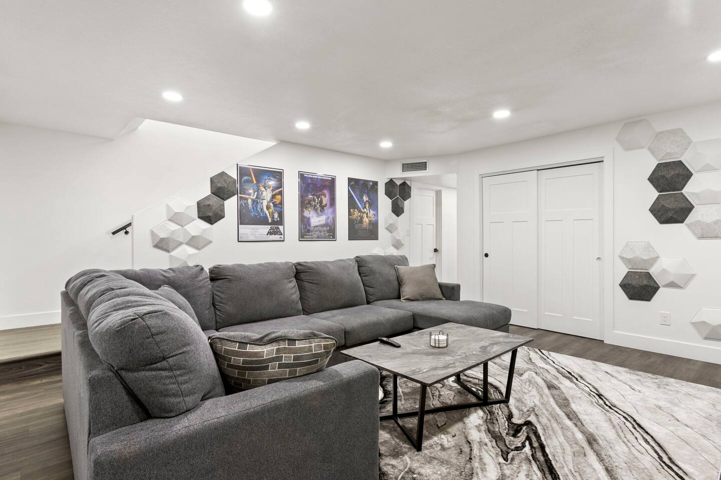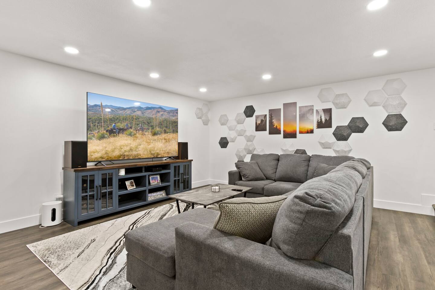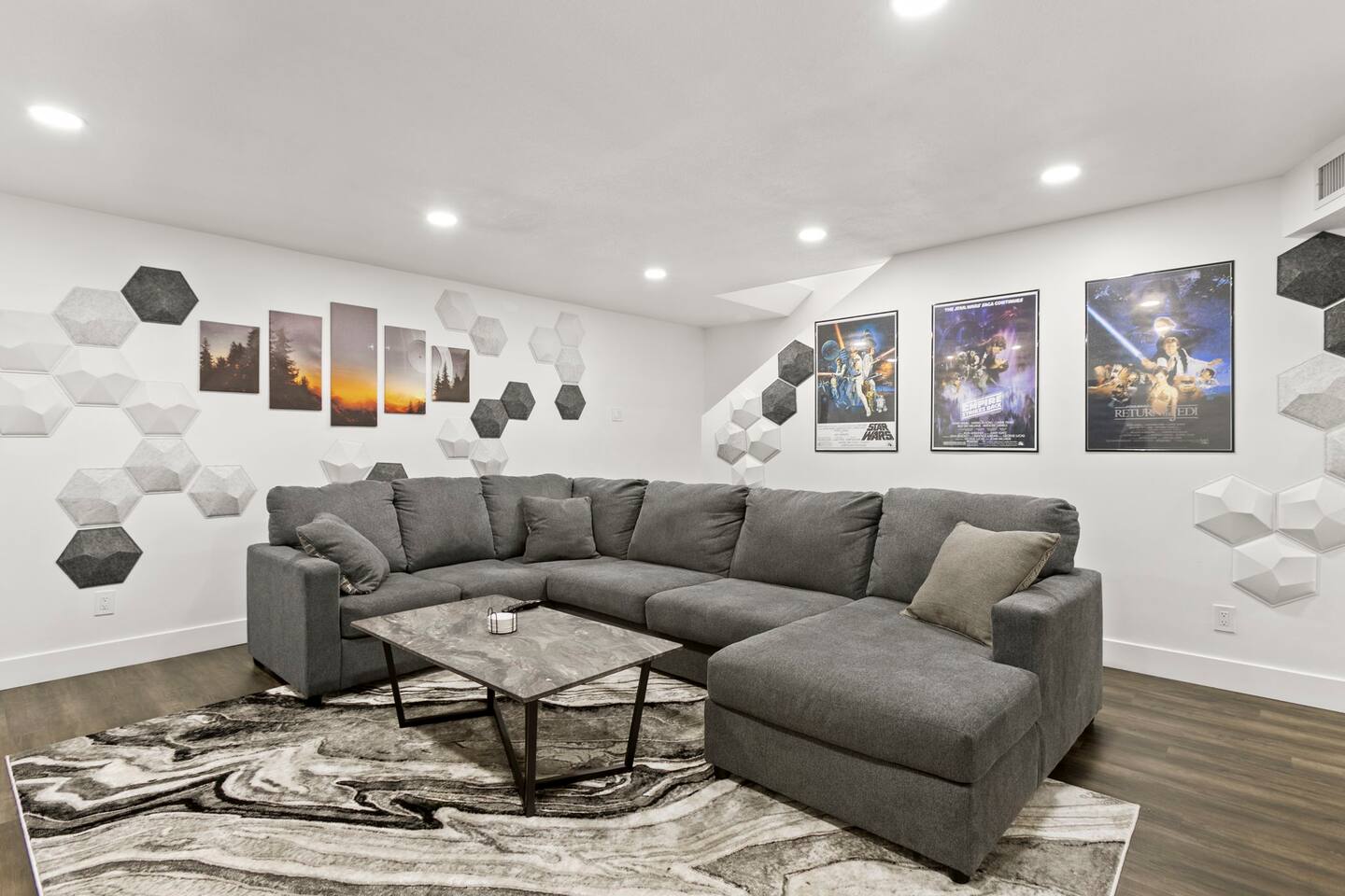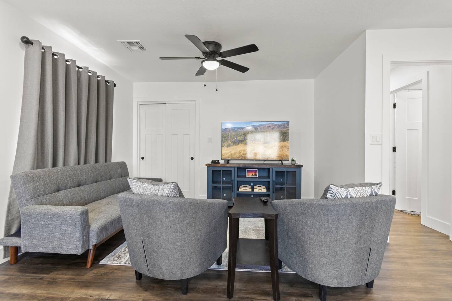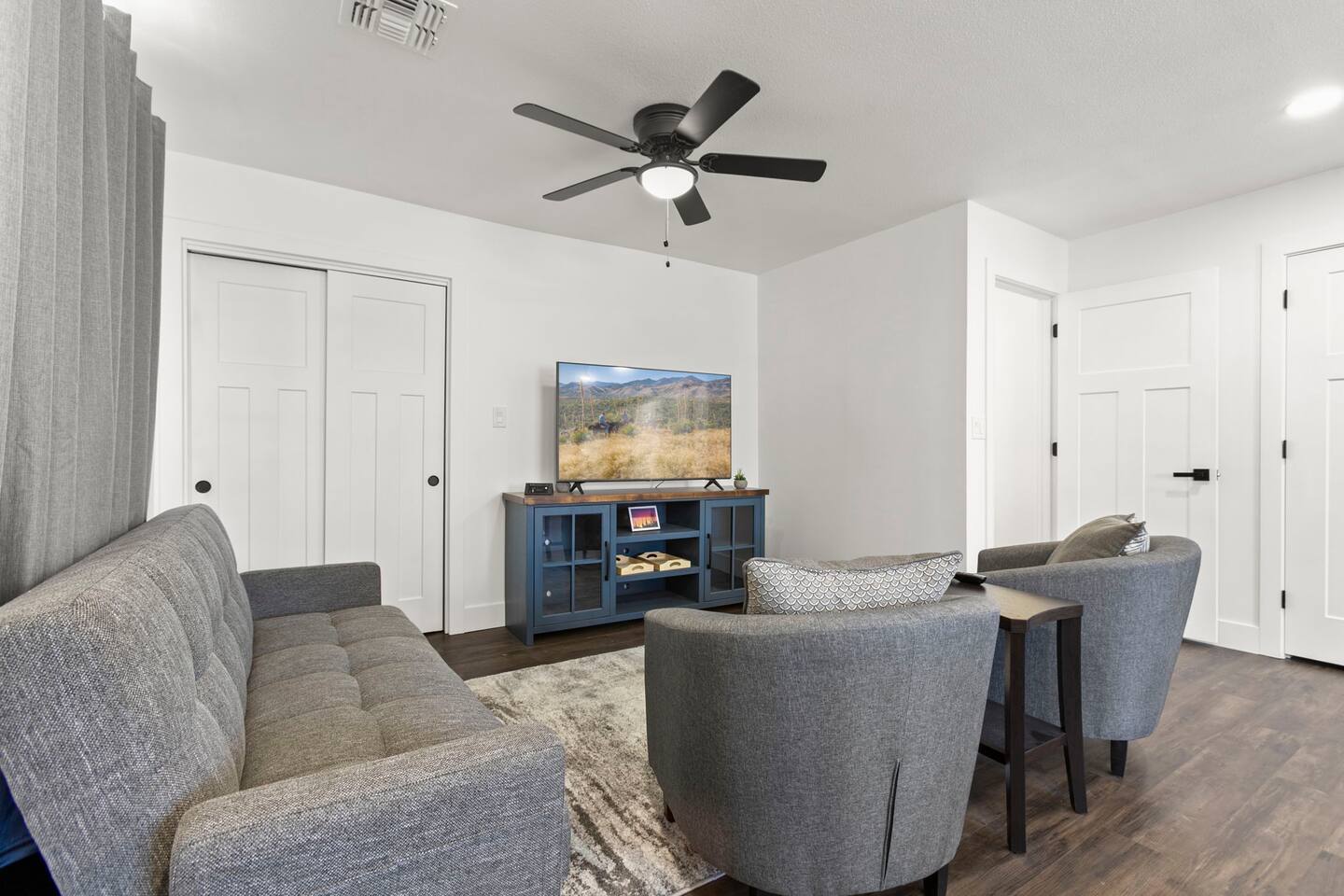 The Space Escape to Grove Oasis, which combines large square footage and custom design. Be prepared as this open-concept home will pull you right in. Upon entering the residence, you’ll notice the spacious floor plan welcoming you to make yourself right at home. Before sprinting to the pool, however, make sure to explore the spacious indoor living areas with beautiful bedrooms in which to kick back and relax away your travels. But don't rest too long - there's so much to do at this stylish home! Full Service Kitchen: Indulge in our modern full-service kitchen! With state-of-the-art appliances seamlessly integrated into the sleek, minimalist aesthetic, this culinary haven caters to every need. Whether you're a seasoned chef or an amateur cook, we welcome you to come spice up life! Living Room Area: Kick back and relax with the entire crew in the incredible living room space off the open concept kitchen and dining room. Large spacious L shaped sofa is the perfect space to stream your favorite shows on our 75" Smart TV while waiting for dinner with family and friends. Theatre/Bonus Room Area: Get ready for epic movie nights in our theater! We're talking an 86" screen that's basically life-sized, and a sound system that'll have you feeling every boom and whisper. So grab the popcorn, kick back, and let's turn movie nights into unforgettable adventures, right here at your home away from home. Bedrooms: Come sink into a cloud of comfort in our bedrooms! We use soft sheets and snuggly comforters that'll make you never want to leave. A King, Four Queens, and eight Bunk beds for the kiddos. Oh and a futon! Bring the gang and have maximum sleepover vibes. It's all about making your stay feel like a warm hug – cozy and totally awesome. In total we have A king, three Queens, and 2 sets of bunk beds for the kiddos. Please note that Bedroom 1 has extra wide 36" doors for step-less outdoor entry, bathroom, and kitchen access. Direct access to a connected full bath that has a step-free door-less extra wide shower ramp and a heavy duty adjustable height plastic shower bench w/ backrest and shower handles. Bathrooms: Fresh and fabulous, our remodeled bathrooms are here to elevate your stay! Four full bathrooms so that sharing is limited! Fluffy towels, modern vibes – it's all set to make you feel pampered and right at home. Outdoor Space: Dive into the ultimate chill zone for our house guests! The pool's got it all - a slide that's all about fun, a spa that's pure relaxation, and a cool waterfall corner for those lazy vibes. It's all here, so grab your swimsuit and let's make some splashy memories. After a nice dip, the kids' playhouse is ready for adventure, while the BBQ grill is sizzling for your outdoor feast. Throw down with Corn hole or outdoor Jenga! Pool/Hot Tub: Please note that the pool and spa/hot tub heat cannot be turned on at the same time. These are automated and controlled on our end. If the pool heat is currently on and you'd like to switch to the hot tub, simply send us a message, and we’ll be happy to turn it on for you. We're committed to ensuring you have the best experience possible, so don't hesitate to reach out if you have any questions! Other things to note Entertainment is available at the property: *86" TV Theatre room with sound system *Pool w/ waterslide/fountains/waterfall, Spa *Play-set, outdoor toys *Games, board/card games. Parking Instructions: 2 cars in driveway, 2 cars on street by the house. Nestled in Mesa, you’ll have easy access to the finest dining, entertainment, and major freeways to travel the Phoenix valley as you please. Following are a list of close by attractions: Emerald Park: A 3 minute walk will land you at Emerald Park. Over 16 acres of green grass with lots of fun options including: Disk Golf , Basketball Courts, Picnic Tables/Grills, a Playground, and more! Look for our disk golf set in the outdoor toys. Mother Nature's Farm: Just a 3 minute drive down the road is Mother Nature's Farm. Special seasonal activities can be found here! Pumpkin patches, a hay bale maze, a cozy farm boutique, and an animal petting area make this a great memory and photoshoot! Local Golf: Hit up the many nearby golf courses that are just a few miles away! Downtown Gilbert:Make sure to visit the lively nightlife of Gilbert. Just an 8 minute drive south, the town offers many pubs and restaurants. Just take Gilbert Rd south. You can't miss it! Mesa Arts Center:Ten minutes Northwest will take you to the Mesa Arts Center. Make sure to check the many events, concerts, and exhibitions! A local favorite. Golfland Sunsplash Waterpark:Cool off with the family favorite waterpark! Just 8 minutes west and you'll be slippin' and slidin'! Mini golf is also available for a quick match! There are many stores nearby to stock up with. All within a 5 minute drive or less so that you spend less time shopping and more time relaxing! Bedroom 1 has extra wide 36" doors for step-less outdoor entry, bathroom, and kitchen access. Direct access to a connected full bath that has a step-free door-less extra wide shower ramp and a heavy duty adjustable height plastic shower bench w/ backrest and shower handles. TPT License #21525826 Mesa City License #LIC23-08035