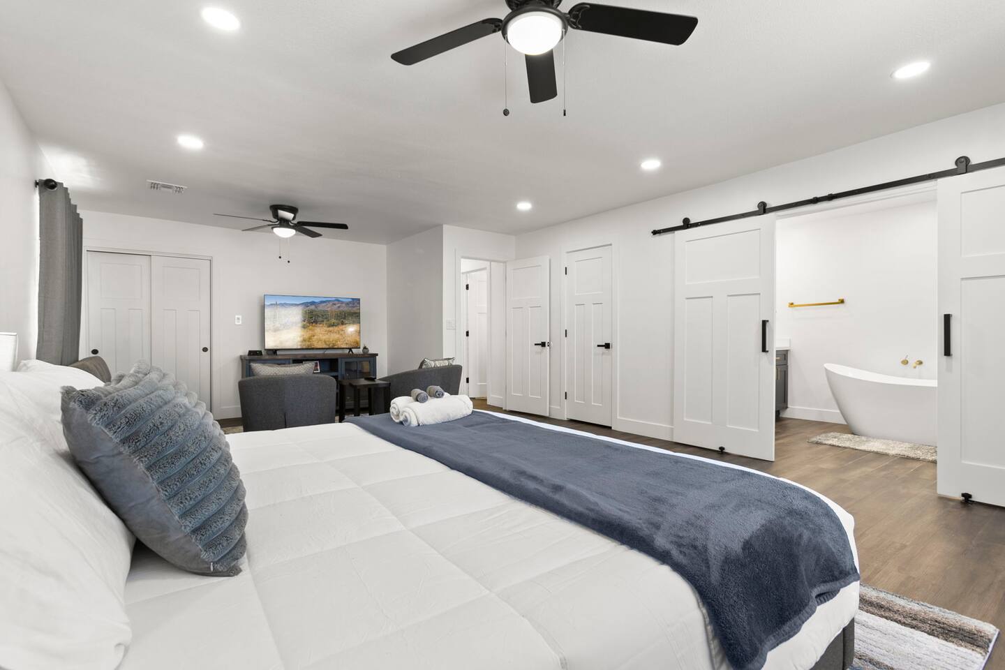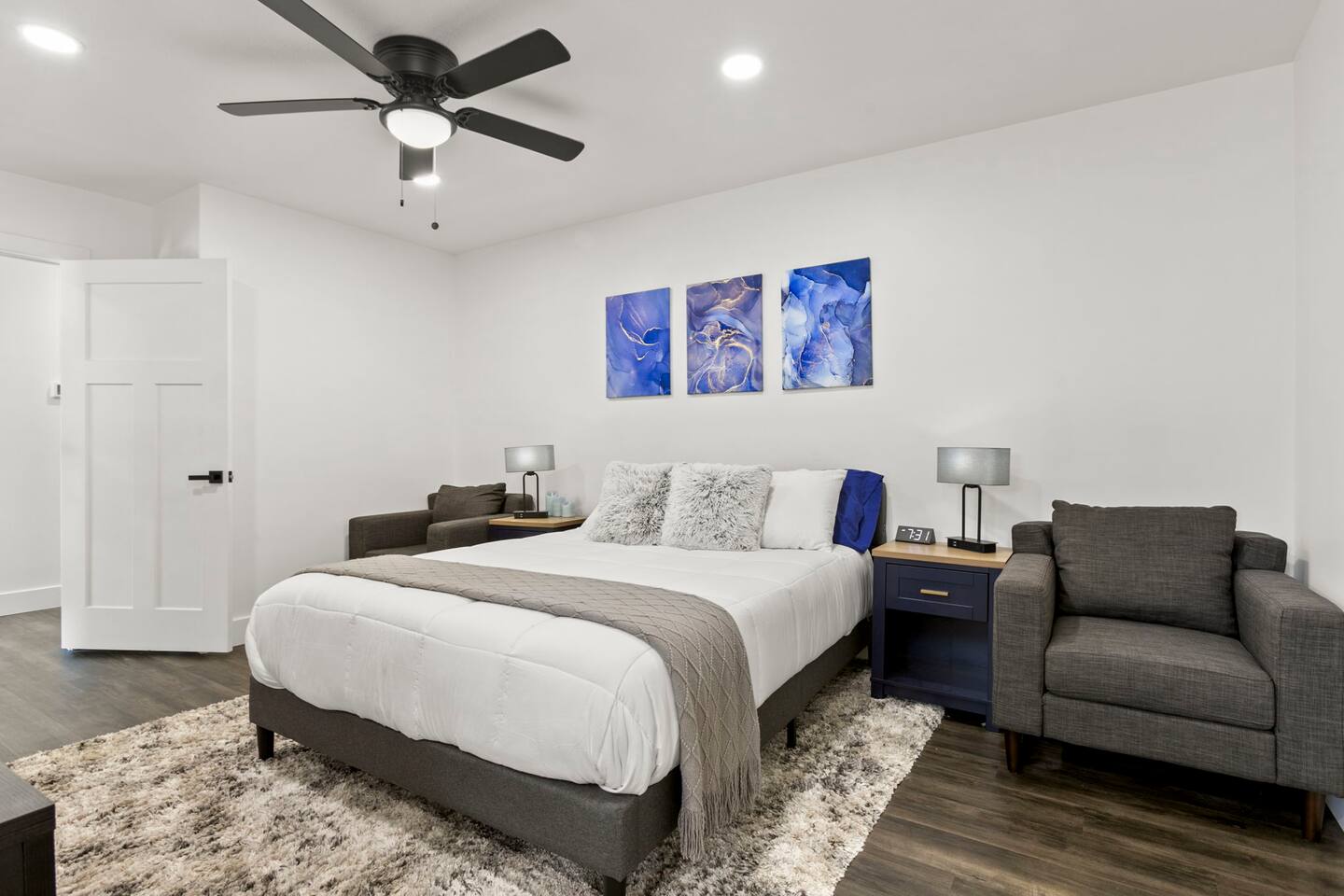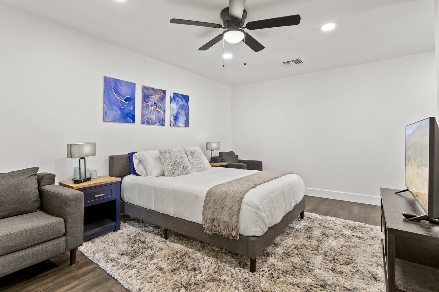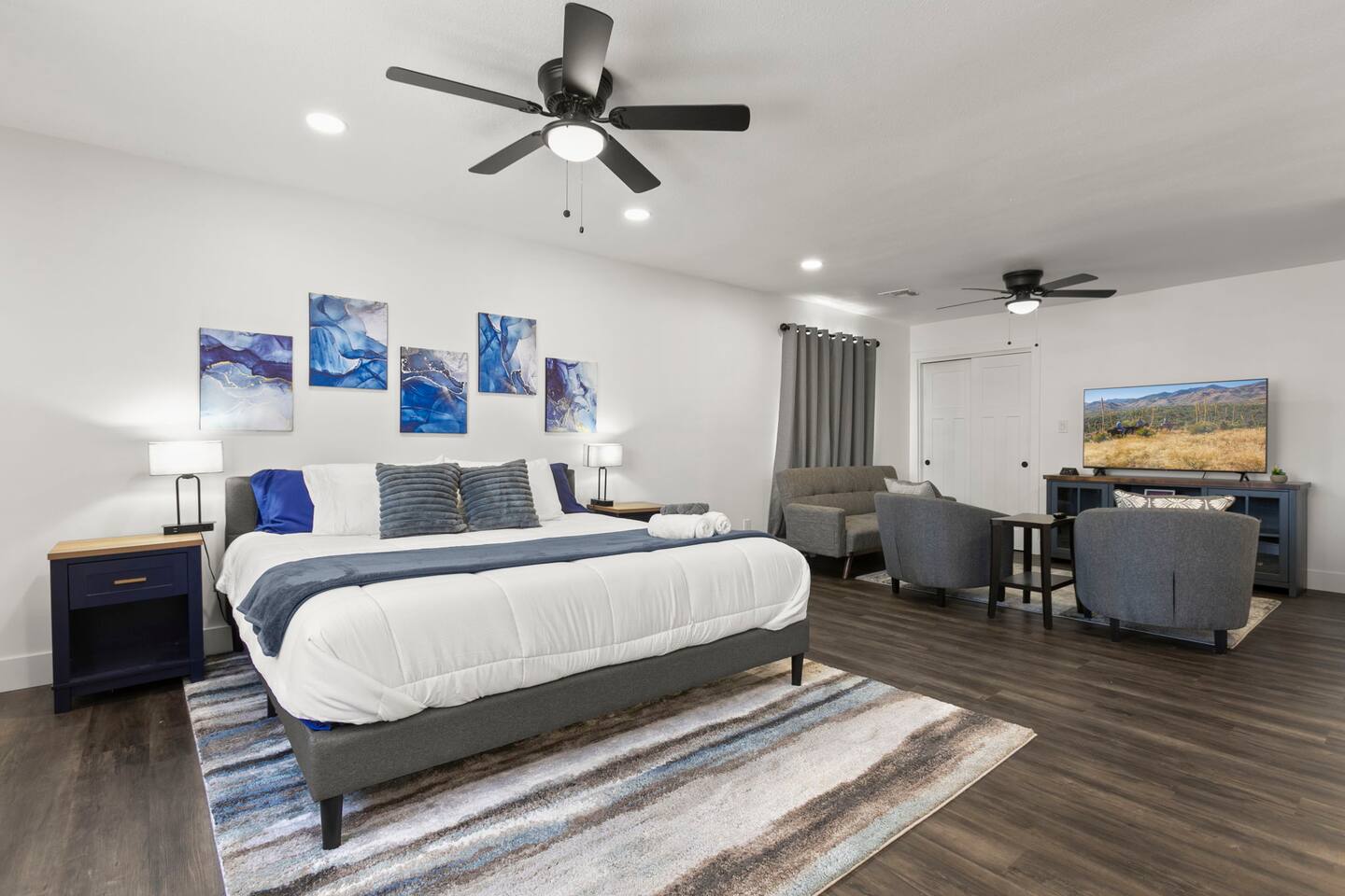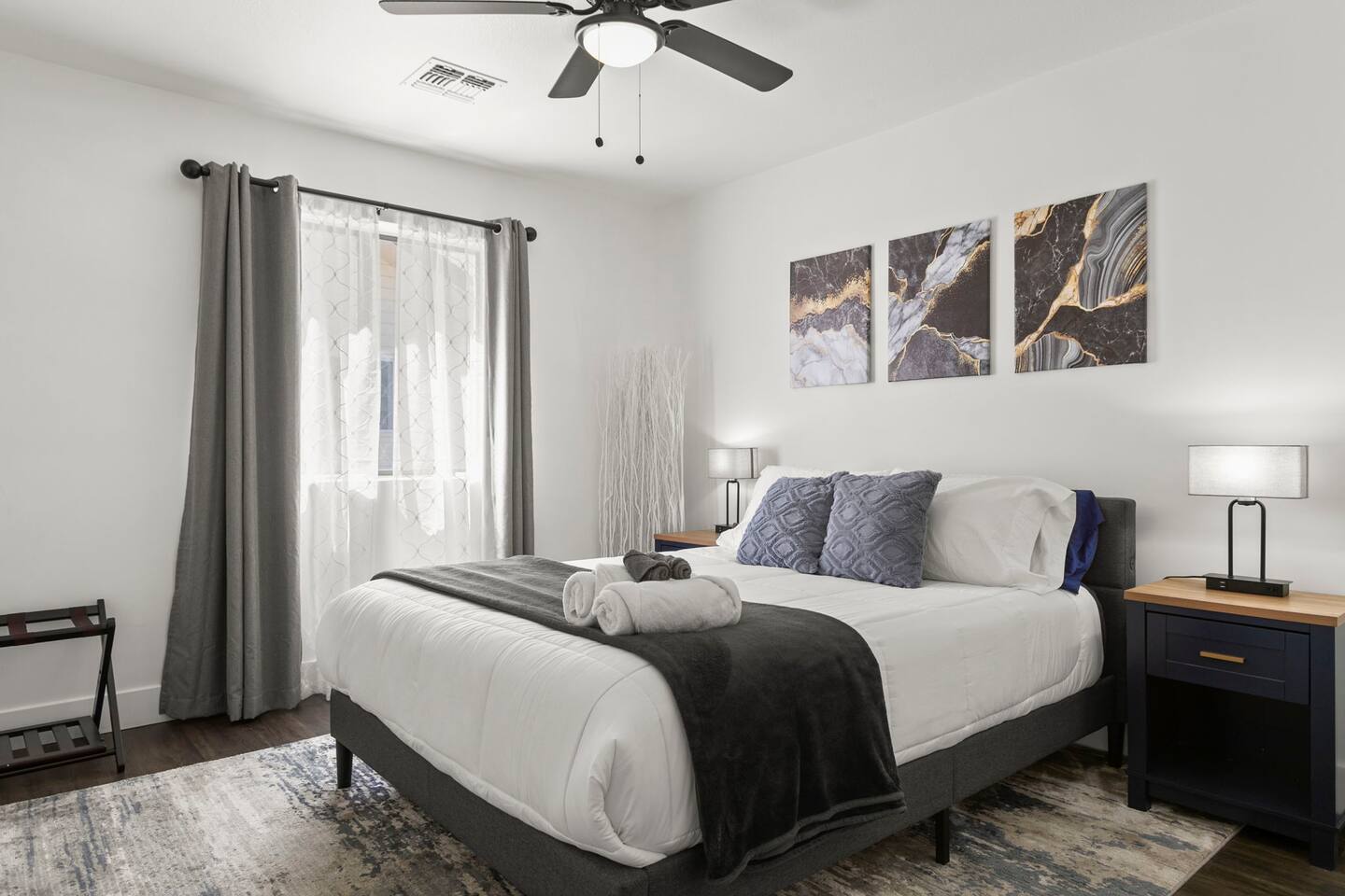 The Space Escape to Grove Oasis, which combines large square footage and custom design. Be prepared as this open-concept home will pull you right in. Upon entering the residence, you’ll notice the spacious floor plan welcoming you to make yourself right at home. Before sprinting to the pool, however, make sure to explore the spacious indoor living areas with beautiful bedrooms in which to kick back and relax away your travels. But don't rest too long - there's so much to do at this stylish home! Full Service Kitchen: Indulge in our modern full-service kitchen! With state-of-the-art appliances seamlessly integrated into the sleek, minimalist aesthetic, this culinary haven caters to every need. Whether you're a seasoned chef or an amateur cook, we welcome you to come spice up life! Living Room Area: Kick back and relax with the entire crew in the incredible living room space off the open concept kitchen and dining room. Large spacious L shaped sofa is the perfect space to stream your favorite shows on our 75" Smart TV while waiting for dinner with family and friends. Theatre/Bonus Room Area: Get ready for epic movie nights in our theater! We're talking an 86" screen that's basically life-sized, and a sound system that'll have you feeling every boom and whisper. So grab the popcorn, kick back, and let's turn movie nights into unforgettable adventures, right here at your home away from home. Bedrooms: Come sink into a cloud of comfort in our bedrooms! We use soft sheets and snuggly comforters that'll make you never want to leave. A King, Four Queens, and eight Bunk beds for the kiddos. Oh and a futon! Bring the gang and have maximum sleepover vibes. It's all about making your stay feel like a warm hug – cozy and totally awesome. In total we have A king, three Queens, and 2 sets of bunk beds for the kiddos. Please note that Bedroom 1 has extra wide 36" doors for step-less outdoor entry, bathroom, and kitchen access. Direct access to a connected full bath that has a step-free door-less extra wide shower ramp and a heavy duty adjustable height plastic shower bench w/ backrest and shower handles. Bathrooms: Fresh and fabulous, our remodeled bathrooms are here to elevate your stay! Four full bathrooms so that sharing is limited! Fluffy towels, modern vibes – it's all set to make you feel pampered and right at home. Outdoor Space: Dive into the ultimate chill zone for our house guests! The pool's got it all - a slide that's all about fun, a spa that's pure relaxation, and a cool waterfall corner for those lazy vibes. It's all here, so grab your swimsuit and let's make some splashy memories. After a nice dip, the kids' playhouse is ready for adventure, while the BBQ grill is sizzling for your outdoor feast. Throw down with Corn hole or outdoor Jenga! Pool/Hot Tub: Please note that the pool and spa/hot tub heat cannot be turned on at the same time. These are automated and controlled on our end. If the pool heat is currently on and you'd like to switch to the hot tub, simply send us a message, and we’ll be happy to turn it on for you. We're committed to ensuring you have the best experience possible, so don't hesitate to reach out if you have any questions! Other things to note Entertainment is available at the property: *86" TV Theatre room with sound system *Pool w/ waterslide/fountains/waterfall, Spa *Play-set, outdoor toys *Games, board/card games. Parking Instructions: 2 cars in driveway, 2 cars on street by the house. Nestled in Mesa, you’ll have easy access to the finest dining, entertainment, and major freeways to travel the Phoenix valley as you please. Following are a list of close by attractions: Emerald Park: A 3 minute walk will land you at Emerald Park. Over 16 acres of green grass with lots of fun options including: Disk Golf , Basketball Courts, Picnic Tables/Grills, a Playground, and more! Look for our disk golf set in the outdoor toys. Mother Nature's Farm: Just a 3 minute drive down the road is Mother Nature's Farm. Special seasonal activities can be found here! Pumpkin patches, a hay bale maze, a cozy farm boutique, and an animal petting area make this a great memory and photoshoot! Local Golf: Hit up the many nearby golf courses that are just a few miles away! Downtown Gilbert:Make sure to visit the lively nightlife of Gilbert. Just an 8 minute drive south, the town offers many pubs and restaurants. Just take Gilbert Rd south. You can't miss it! Mesa Arts Center:Ten minutes Northwest will take you to the Mesa Arts Center. Make sure to check the many events, concerts, and exhibitions! A local favorite. Golfland Sunsplash Waterpark:Cool off with the family favorite waterpark! Just 8 minutes west and you'll be slippin' and slidin'! Mini golf is also available for a quick match! There are many stores nearby to stock up with. All within a 5 minute drive or less so that you spend less time shopping and more time relaxing! Bedroom 1 has extra wide 36" doors for step-less outdoor entry, bathroom, and kitchen access. Direct access to a connected full bath that has a step-free door-less extra wide shower ramp and a heavy duty adjustable height plastic shower bench w/ backrest and shower handles. TPT License #21525826 Mesa City License #LIC23-08035
