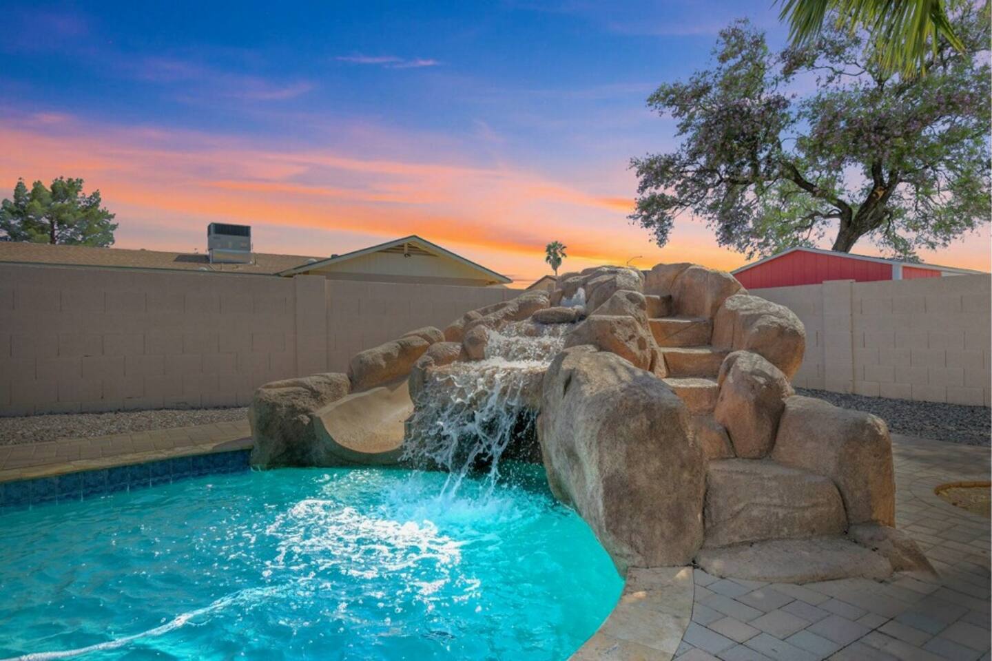 Welcome to Grove Oasis! This luxurious 6-bedroom, 4-bathroom home is designed for the ultimate Arizona getaway. Relax and unwind with a waterslide, hot tub, state-of-the-art home theater, and a brand new modern kitchen. NEARBY ATTRACTIONS Phoenix Sky Harbor Airport - 16 min (14.9 mi) Arizona Commemorative Air Force Museum - 15 min (7.8 mi) Arizona Museum of Natural History - 10 min (4.1 mi) Downtown Mesa - 9 min (3.9 mi) Old Town Scottsdale - 19 min (15.0 mi) Book your Mesa getaway now!