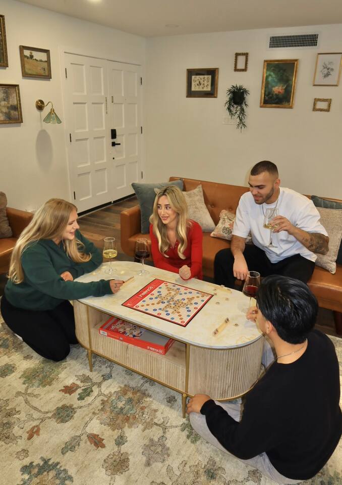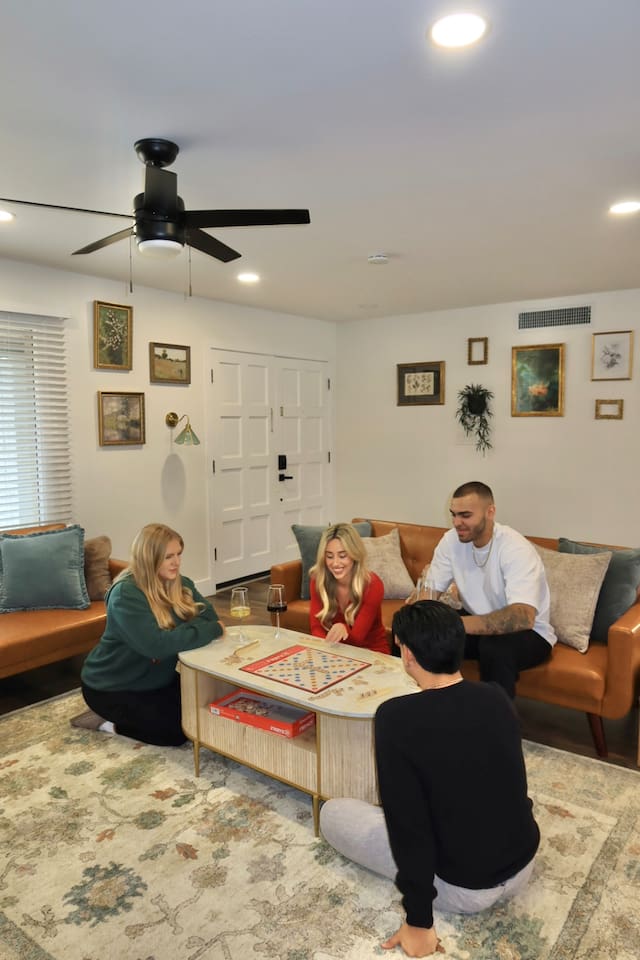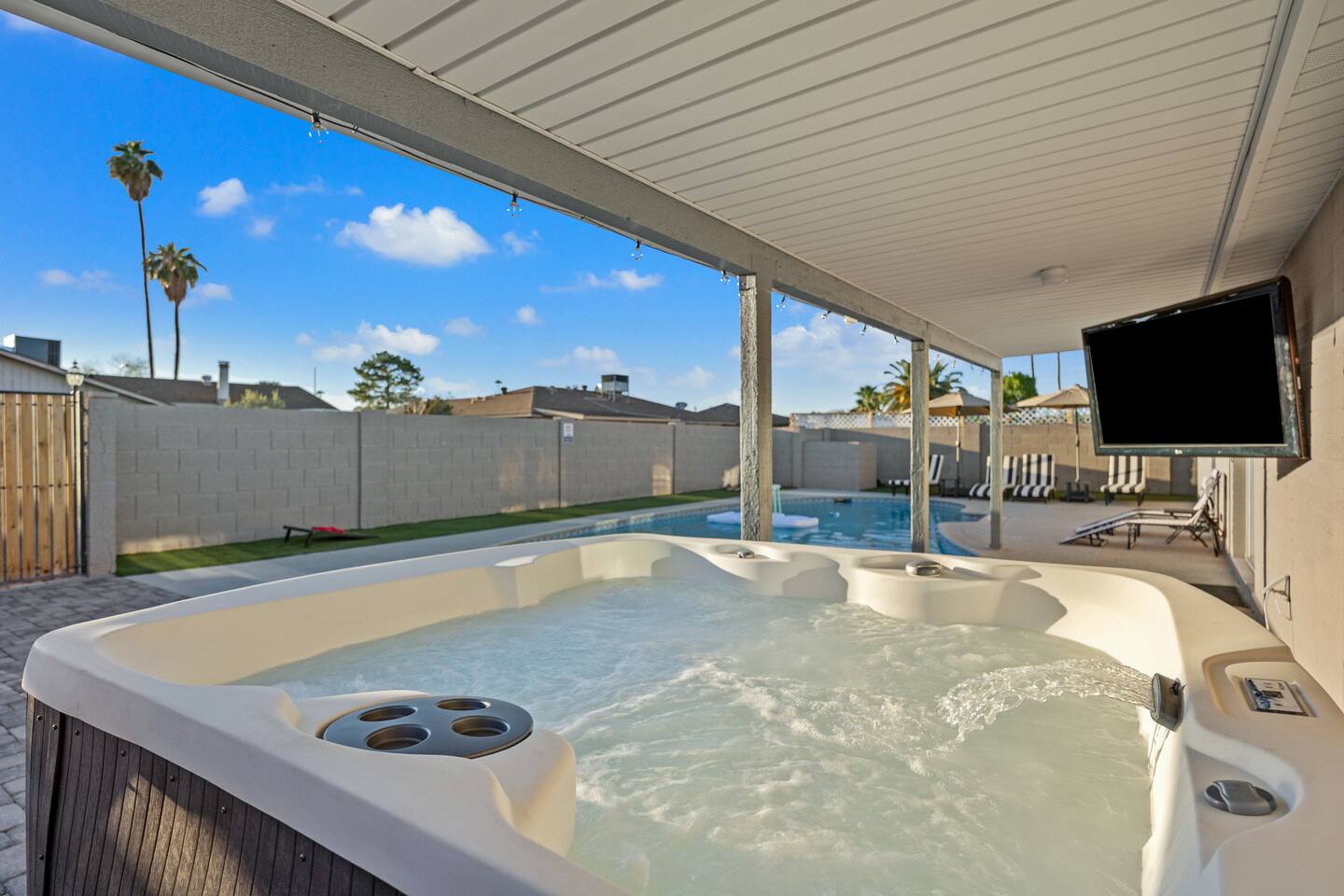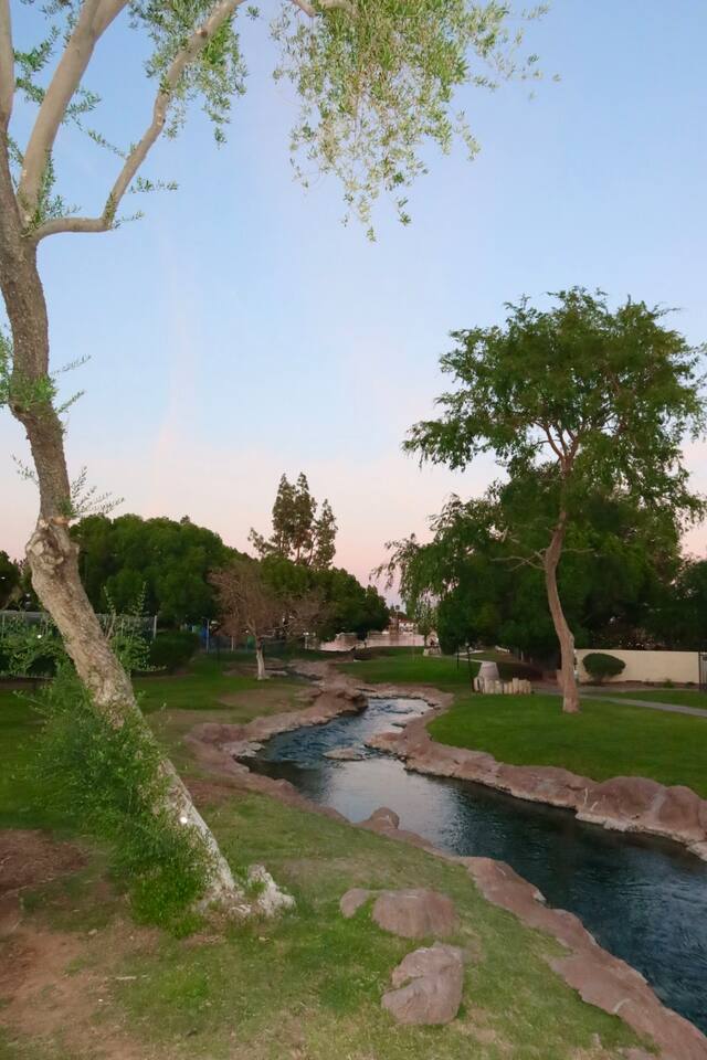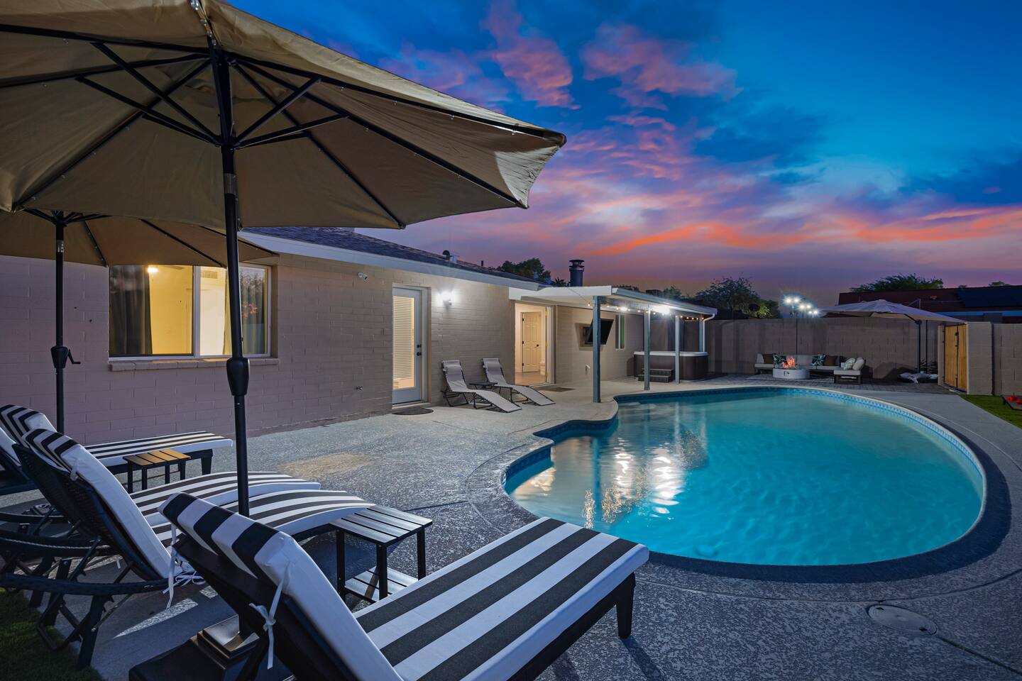 Your Tempe Escape Awaits! Relax in this spacious 4BR, 2BA Tempe retreat, perfect for families or friends! Enjoy a private pool and hot tub, catch a game on the outdoor TV, or unwind by the fire pit under the stars. The open-concept layout is ideal for group hangouts, with games like Cornhole, Pool Pong, and Scrabble to keep everyone entertained. The fully equipped kitchen, with a Nespresso machine, makes it easy to feel at home. A park, playground, and lake are just a quick 10-minute walk away!
