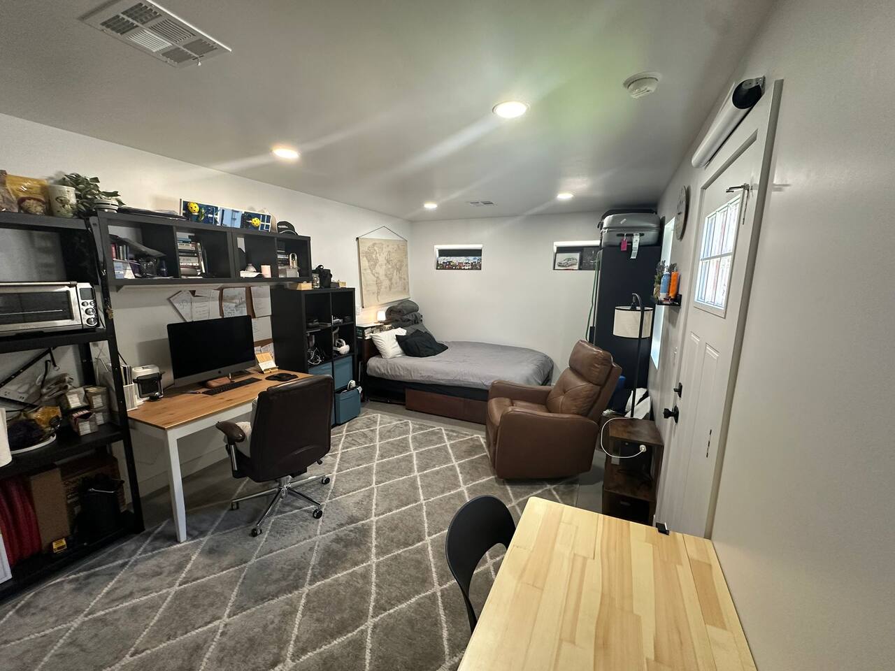 Take it easy at this unique and tranquil getaway. Freshly renovated, furnished, and conveniently positioned. The house is fully furnished, equipped with appliances like a fridge and oven, and your room will include a desk, bed frame, and bed, along with a dedicated workspace for laptops. Floors are concrete, with high-speed internet. Safe area with smoke detector and carbon monoxide detector, and gated. Provided kitchenette and stove top, free parking on premises, in a quiet environment.