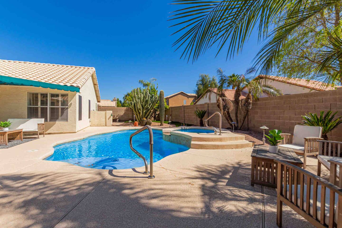 HOUSE RULES & POLICIES: 🚭 NO SMOKING ANYWHERE ON THE PROPERTY. A $1,000 cleaning fee will be charged for any violations. 🐾 No pets allowed anywhere on the property. 👶 Children must be supervised in and around the pool at all times. 📶 DO NOT unplug or disconnect the WiFi router. ⚙️ DO NOT touch the pool equipment. A $500 fee will be charged for violations. Please note that the pool vacuum is essential for maintaining its cleanliness. To ensure a pleasant experience for all guests, kindly leave the pool vacuum in place. Removing it can disrupt our pool maintenance routine. 🏊♂️ POOL & SPA Heating Details – Please Read! Our property has a spillover spa, NOT a separate hot tub. This means the spa and pool share the same water and temperature. When heated, both will be 85°F, but the spa will not reach traditional hot tub temperatures (100-104°F). 💰 Pool/spa heating is $75/day (minimum $150 per reservation). 📌 A separate payment request will be sent after booking, which you can accept or decline as you prefer. ⏳ If you’d like the pool/spa heated, please let us know at least 2 days before check-in so we have time to schedule and warm it up for your stay. ❓ Questions? Just reach out—we’re happy to help! ADDITIONAL HOUSE RULES: 🔇 Quiet hours begin at 10 PM. If you're looking for nightlife, downtown Gilbert has great late-night spots! 🎉 No parties or events allowed. 👤 The primary renter must be at least 24 years old. 📹 Outdoor security cameras are located at the front door, pool equipment, pool, and putting green for property protection. 🍼 Pack ’n Play & high chair available—you’ll find them in the entryway closet. CHECK-IN & CHECK-OUT: ⏰ Check-in: 4:00 PM – Due to cleaning time, early check-ins are typically not available. However, feel free to message us on your arrival day, and we’ll let you know if the home is ready early. ⏳ Check-out: 10:00 AM – We’re unable to offer late check-outs, as we need to prepare for our next guests. We appreciate your cooperation and look forward to hosting you! 😊